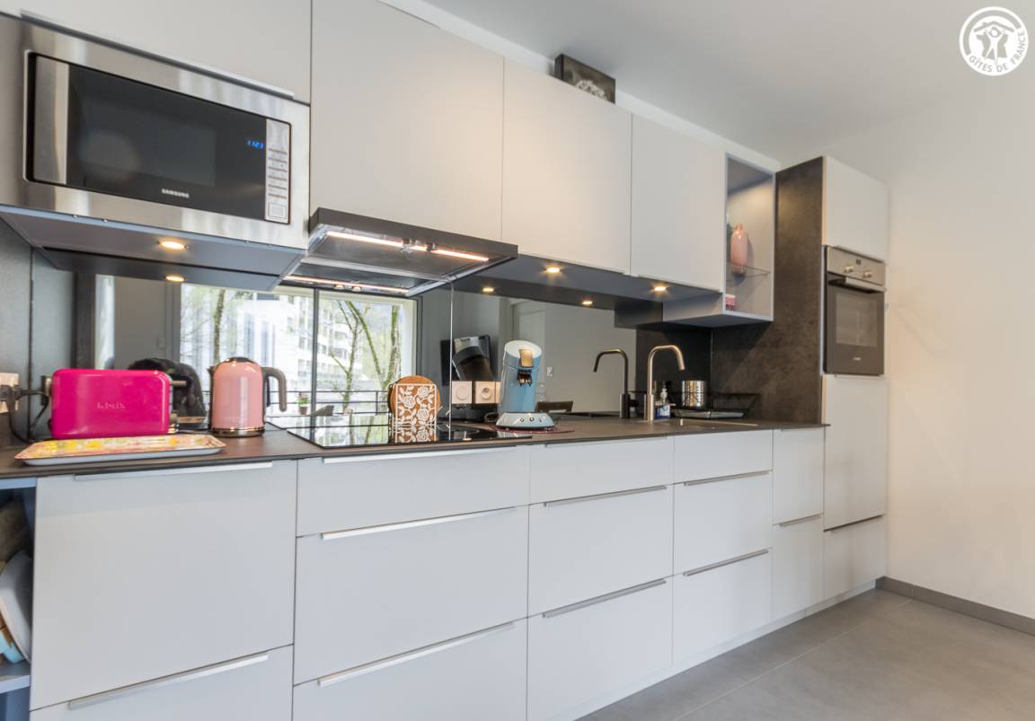 „Appartement très fonctionnel, calme et agréable aussi bien par sa situation que par le confort proposé. Terrasse accessible entourée de verdure. Parking accessible et sécurisé (box).Situé à quelques pas du Lac du Bourget, de petits ports, des plages avec possibilité d'utiliser les pistes cyclables et les transports en commun pour se déplacer. Un très beau paysage avec de très belles ballades à effectuer aux alentours voire au Centre ville d'Aix les Bains.“