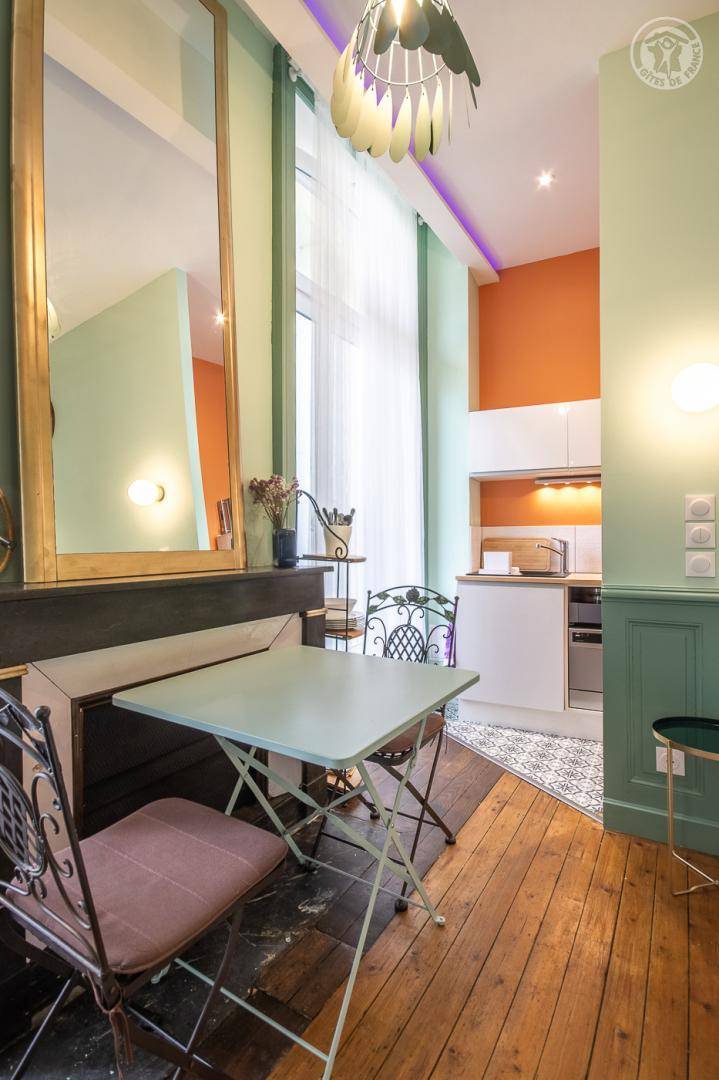 „Très bon séjour ! Le logement est bien équipé, la literie parfaite et l'accès à la Cour et la présence du ventilateur plafonnier est un vrai plus pour les chaudes nuits d'été. Merci pour l'accueil.“