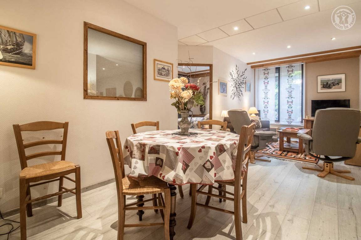 „Logement très bien équipé avec tout ce qu'il faut, dommage qu'il soit au niveau moins 1 de l'immeuble et de ce fait il est un peu sombre, l'éclairage est souvent nécessaire. Quartier très calme. Garage fermé au pied de l'immeuble. En centre ville prés des commerces, à 2,5 km du lac.“
