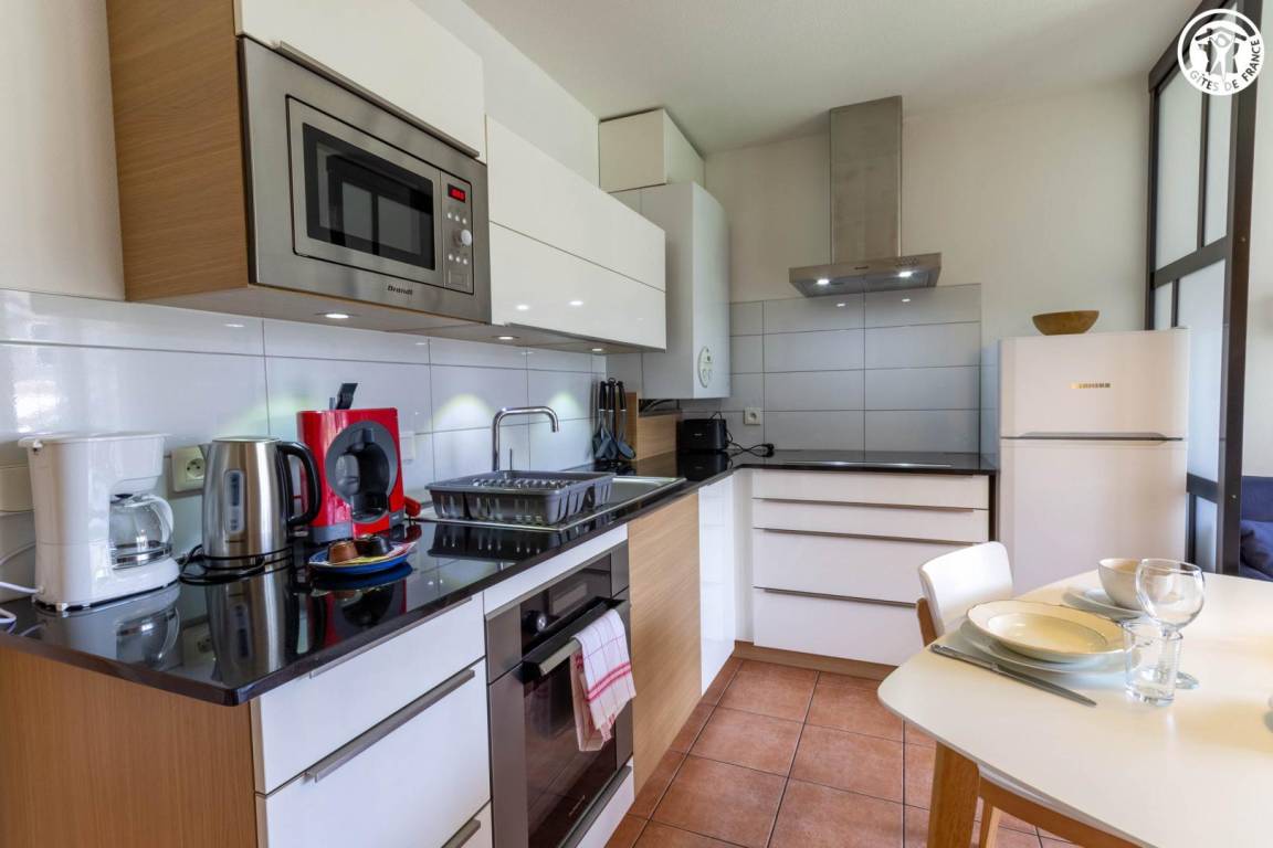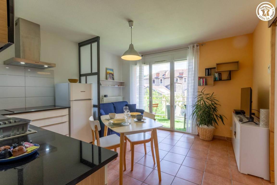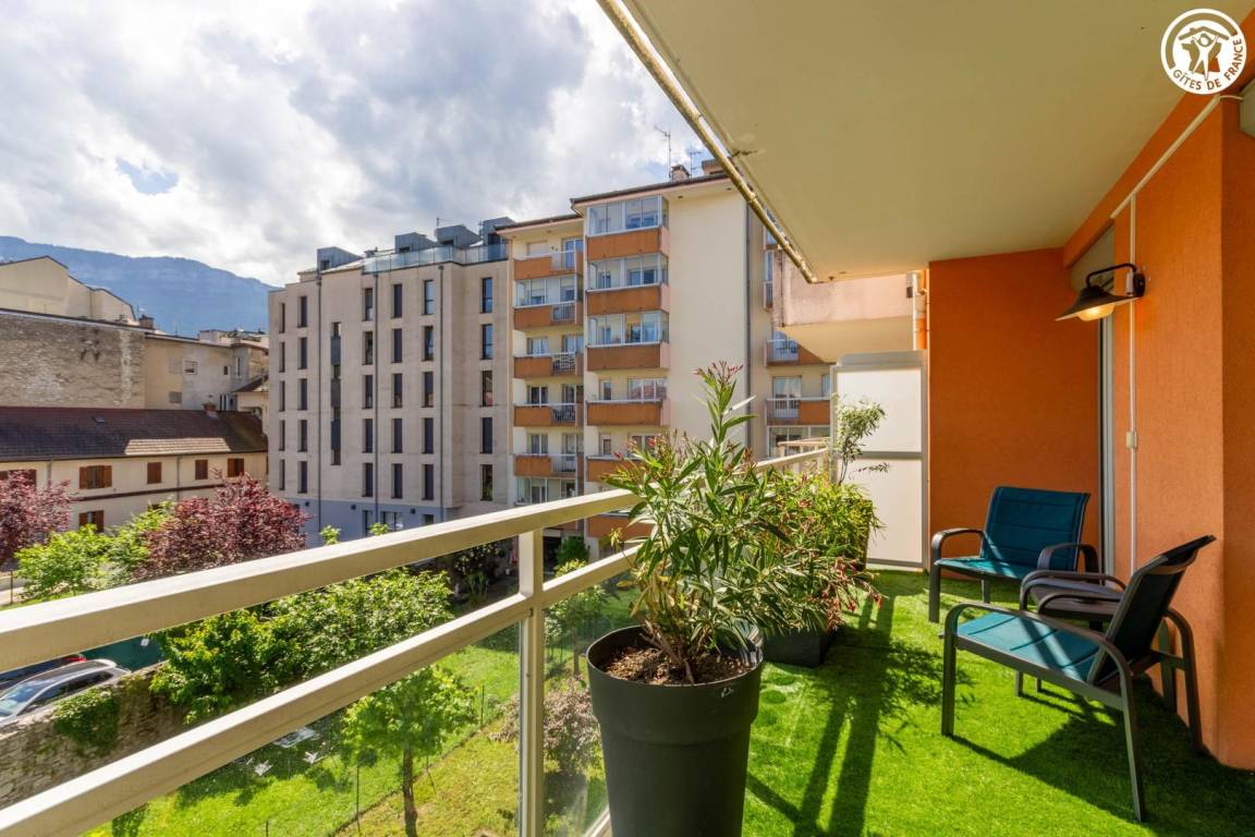 Komfortables Apartment im modernen Stil. Warmes und gemütliches Interieur. Schöne Terrasse mit Essbereich und Ruhebereich. Klare Sicht auf die Revard-Grate. Ideal gelegen in Aix-les-Bains, in der Nähe der Thermalbäder, des Lac de Bourget und des Stadtzentrums.