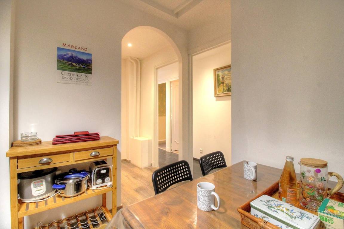Auf den Höhen von Ajaccio, in der beliebten Gegend des Bois des Anglais und etwa 15 Meter von der Avenue Nicolas Pietri und 200m vom Place du Casone entfernt, befindet sich eine 60m² große Wohnung im Erdgeschoss des Hauses der Eigentümer (etwa 15 Stufen hinauf zur Wohnung) in einem 2200m² großen Anwesen, das durch ein elektrisches Tor gesichert ist. Sie setzt sich wie folgt zusammen: