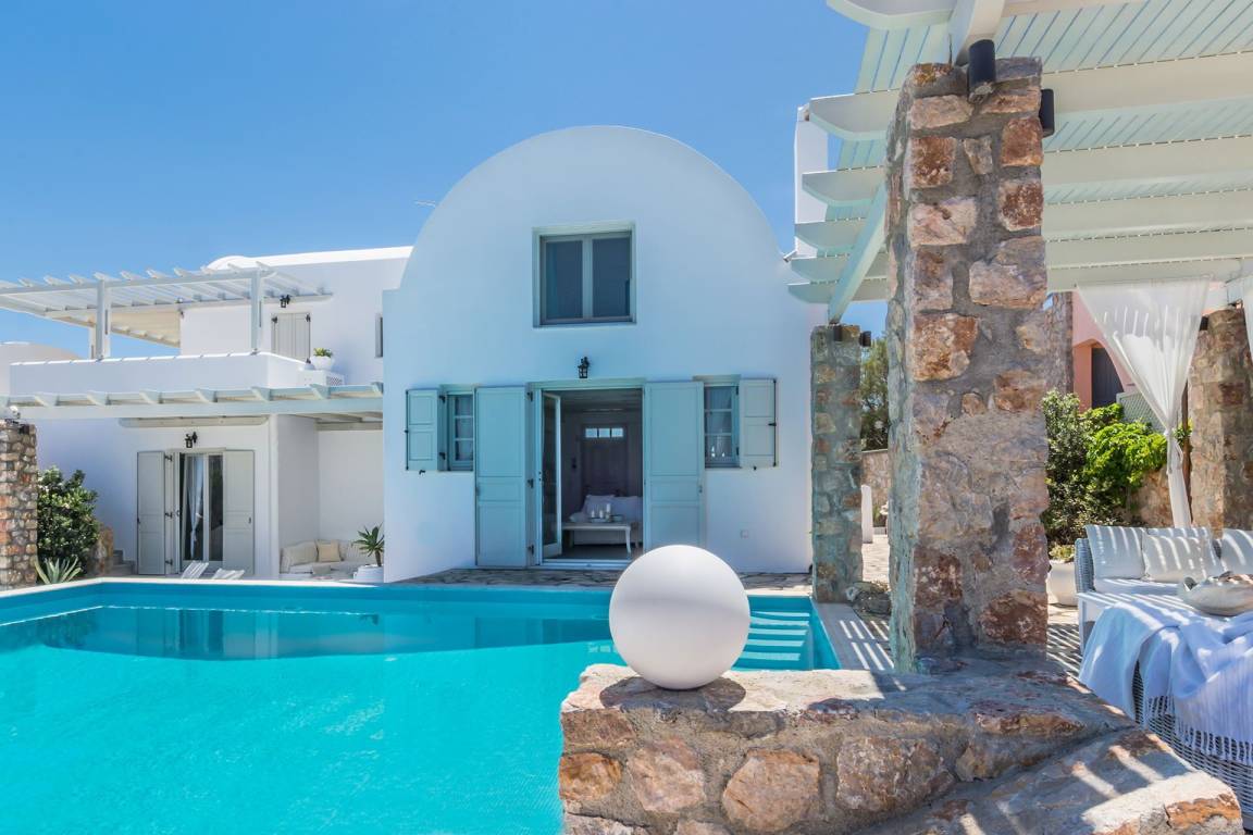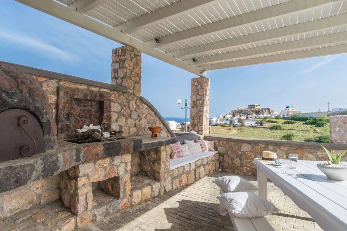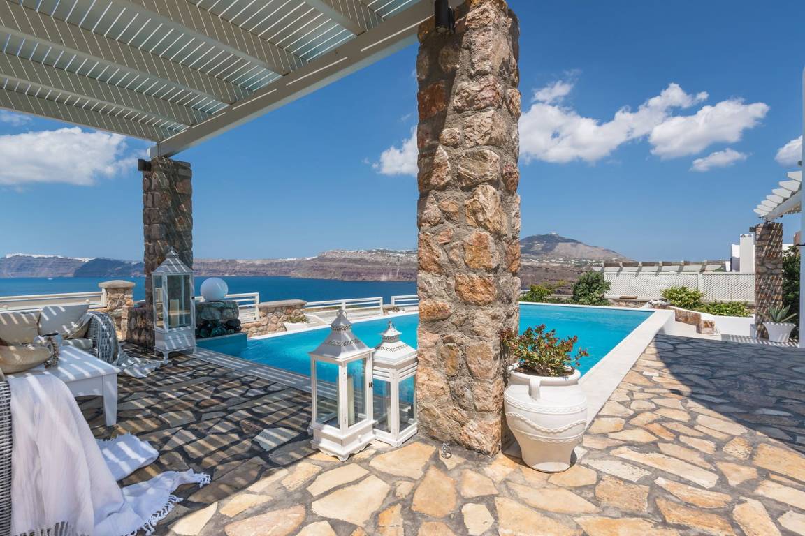 Die Küche verfügt über einen Geschirrspüler und eine Mikrowelle. Die Klimatisierung ist ganzjährig vorhanden; eine Heizung und eine Waschmaschine stehen zur Verfügung. Im Wohnbereich befinden sich ein Fernseher und Satellitenfernsehen. Die Villa ist mit einer Whirlpool-Badewanne ausgestattet. Zur Außenausstattung gehören eine private Terrasse mit Blick auf die Caldera und ein Grillbereich.