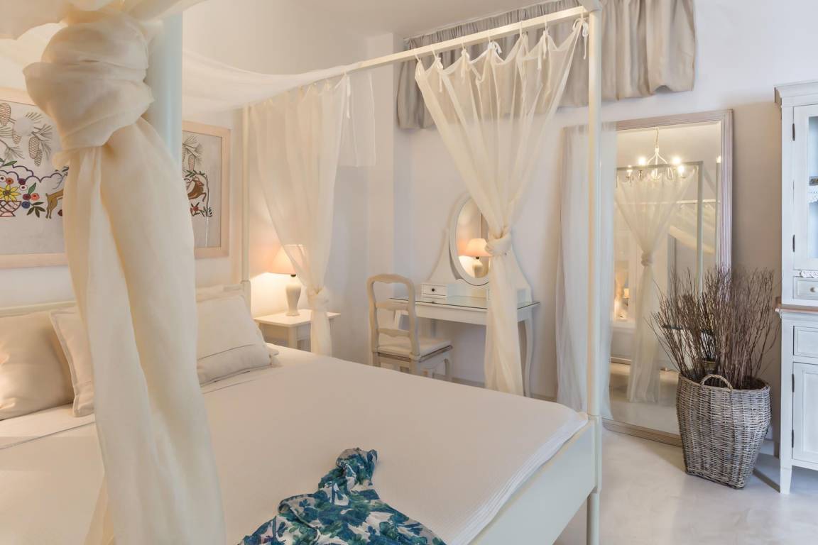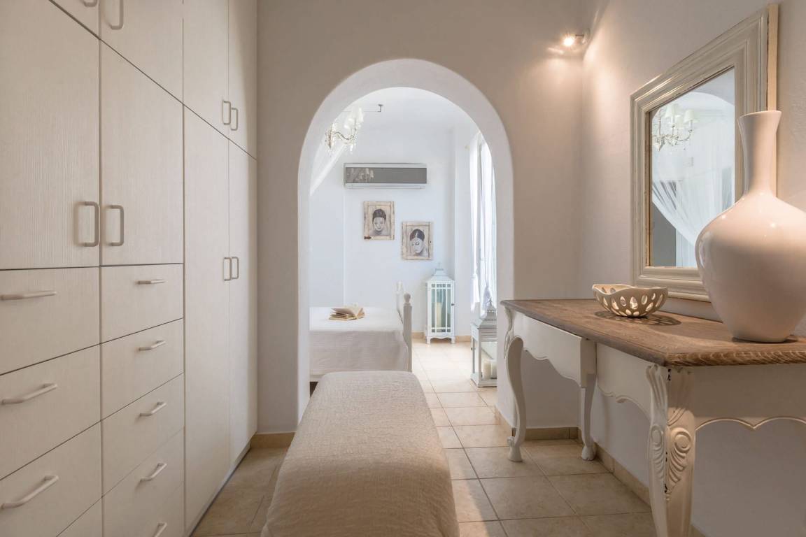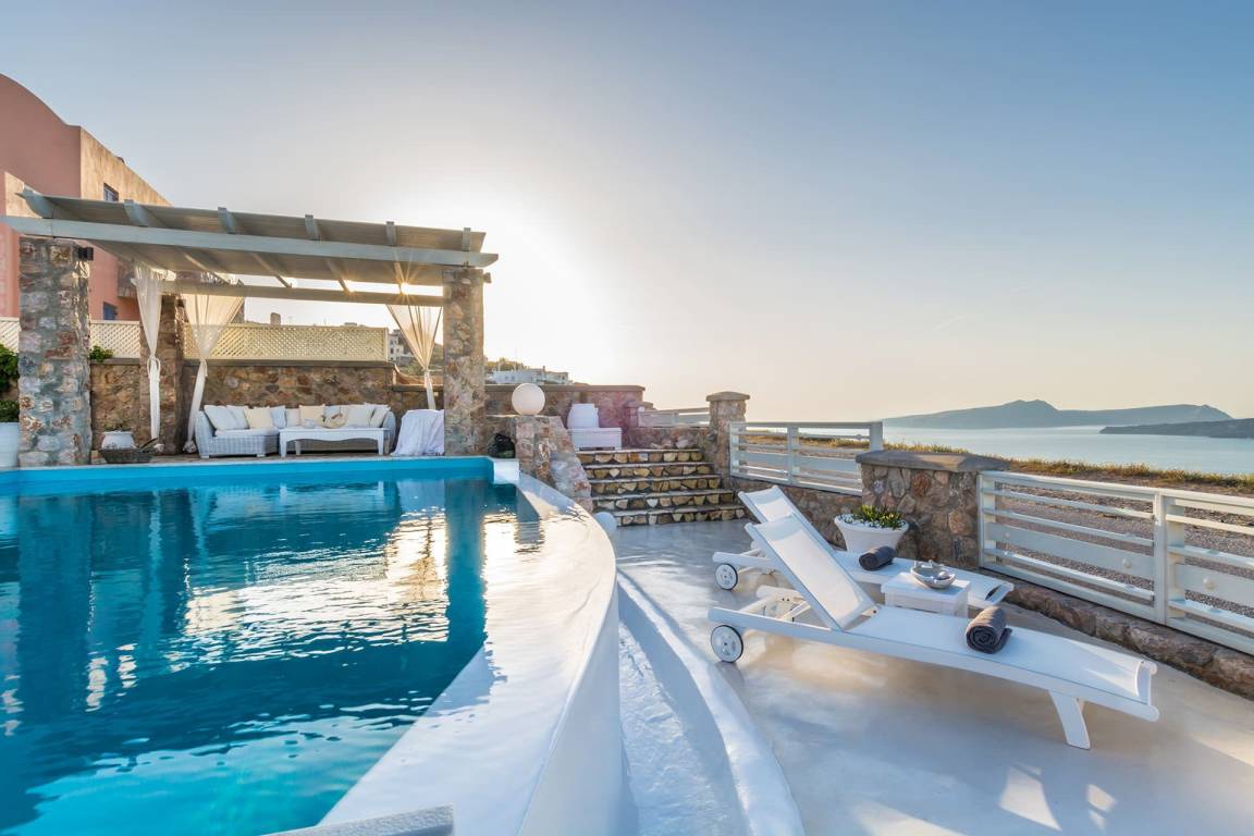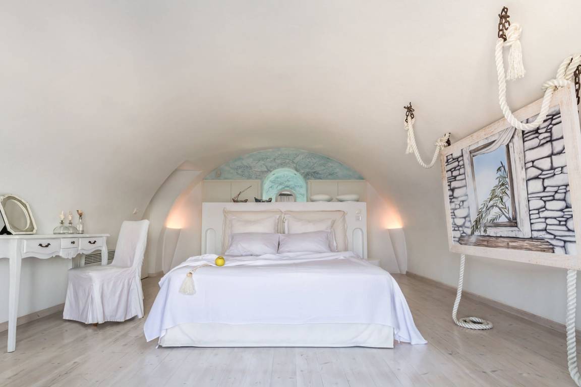Die Küche verfügt über einen Geschirrspüler und eine Mikrowelle. Die Klimatisierung ist ganzjährig vorhanden; eine Heizung und eine Waschmaschine stehen zur Verfügung. Im Wohnbereich befinden sich ein Fernseher und Satellitenfernsehen. Die Villa ist mit einer Whirlpool-Badewanne ausgestattet. Zur Außenausstattung gehören eine private Terrasse mit Blick auf die Caldera und ein Grillbereich.