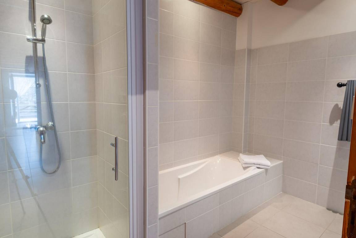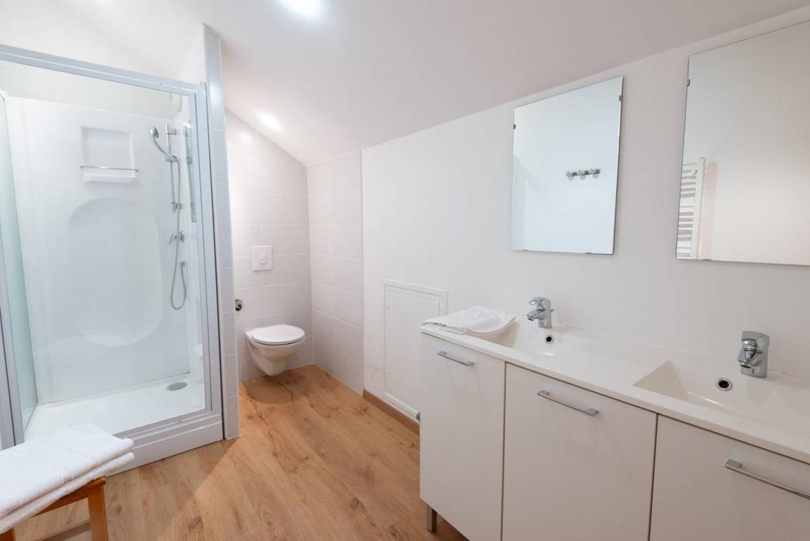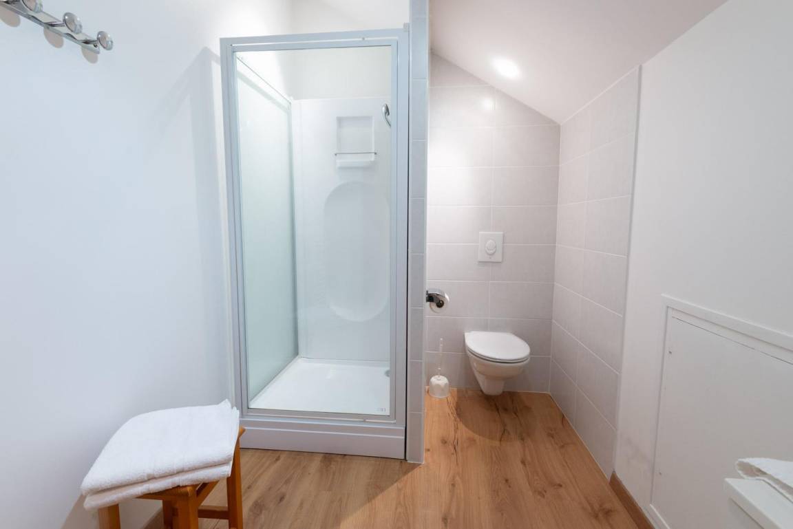 „Logement très bien conçu, laissant assez d'espace à chacun des cinq participants en période de pandémie.. Les deux pièces d'eau, avec une baignoire et une douche pour l'une, une douche pour l'autre, sont à même de faire la différence par rapport à d'autres hébergements. Les deux WC, un séparé, le second dans une pièce d'eau, constituent aussi un vrai plus. Parking éclairé, très proche du gîte. grande terrasse conviviale. Il manque deux rideaux opaques au niveau des fenêtres de toit, dans l'escalier et le palier, pour ceux qui dorment dans cet endroit. Et deux patères pour les vêtements..“
