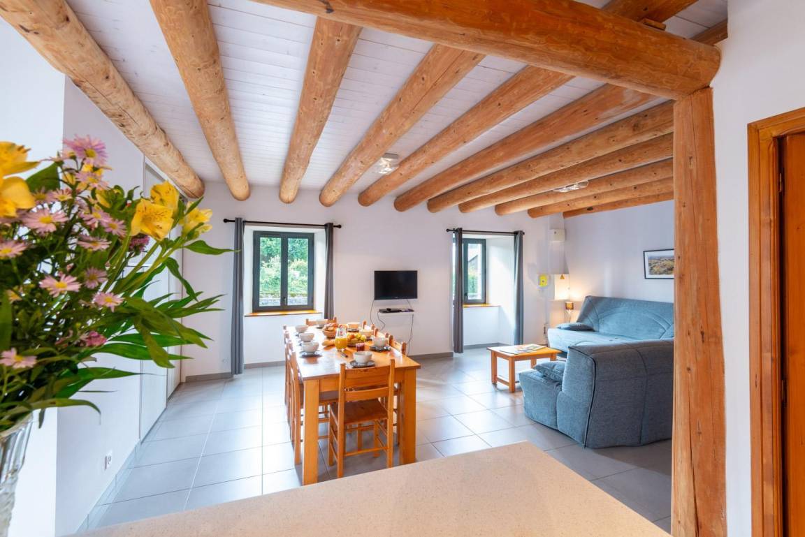 „Nous étions 7 adultes et 1 enfant de 20 mois. Très bonne exposition. Agencement idem. Appartement vaste et neuf. Salle de séjour très agréable et de grande dimension. Nous avons été bien accueillis par les villageois et le maire. (visite du musé du sabot) Pétanque le soir etc..La météo était avec nous !“