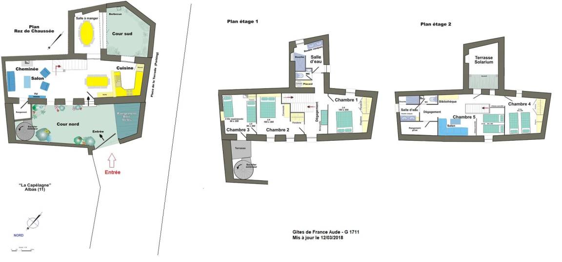 Erdgeschoss: Küche (offener Kamin), Esszimmer mit Blick auf einen Innenhof 2nd. 1.Stock: 3 Zimmer, davon 1 bis 2 Betten 160 und 3 Betten 90 (einschließlich 2 Etagenbetten), Dusche. WC. 2. Stock: 1 Schlafzimmer 2 Betten 90, Wohnzimmer (2 Betten in 90, Bibliothek Zugang, Duschraum. WC. Auserwählten zusätzlich Heizung.