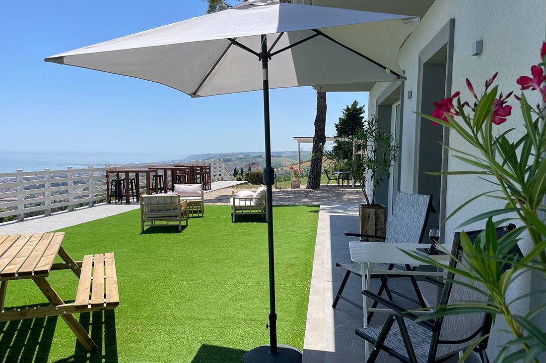 Wir sind seit dem 1. August 2021 offiziell eröffnet und haben 6 neue und moderne Wohnungen realisiert. In unserem 2000 Quadratmeter großen Garten wurde ein neues Salzwasserschwimmbad angelegt. Die Strände von Porto San Giorgio und Lido di Fermo sind 2,5 km von unserem Haus entfernt.