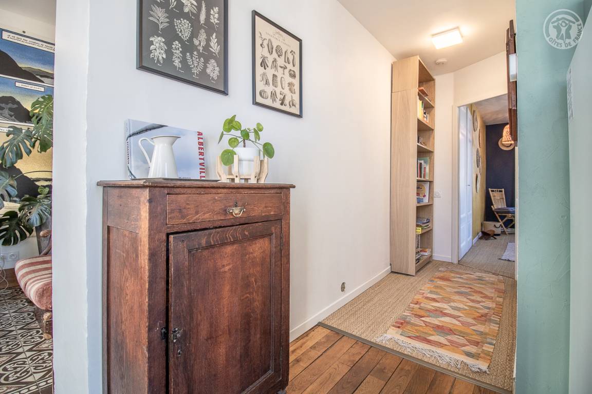 Erdgeschosswohnung im Haus der Eigentümer. Unabhängiger Eingang mit Zugang über ein paar Stufen. Wohnküche (1 Schlafsofa 140x190 cm), Badezimmer (ebenerdige Dusche), separates WC, 1 Schlafzimmer (1 Doppelbett 160x190 cm) mit Zugang zu einem Glasdach. Terrasse. Privater Parkplatz. Bettwäsche und Handtücher inklusive.