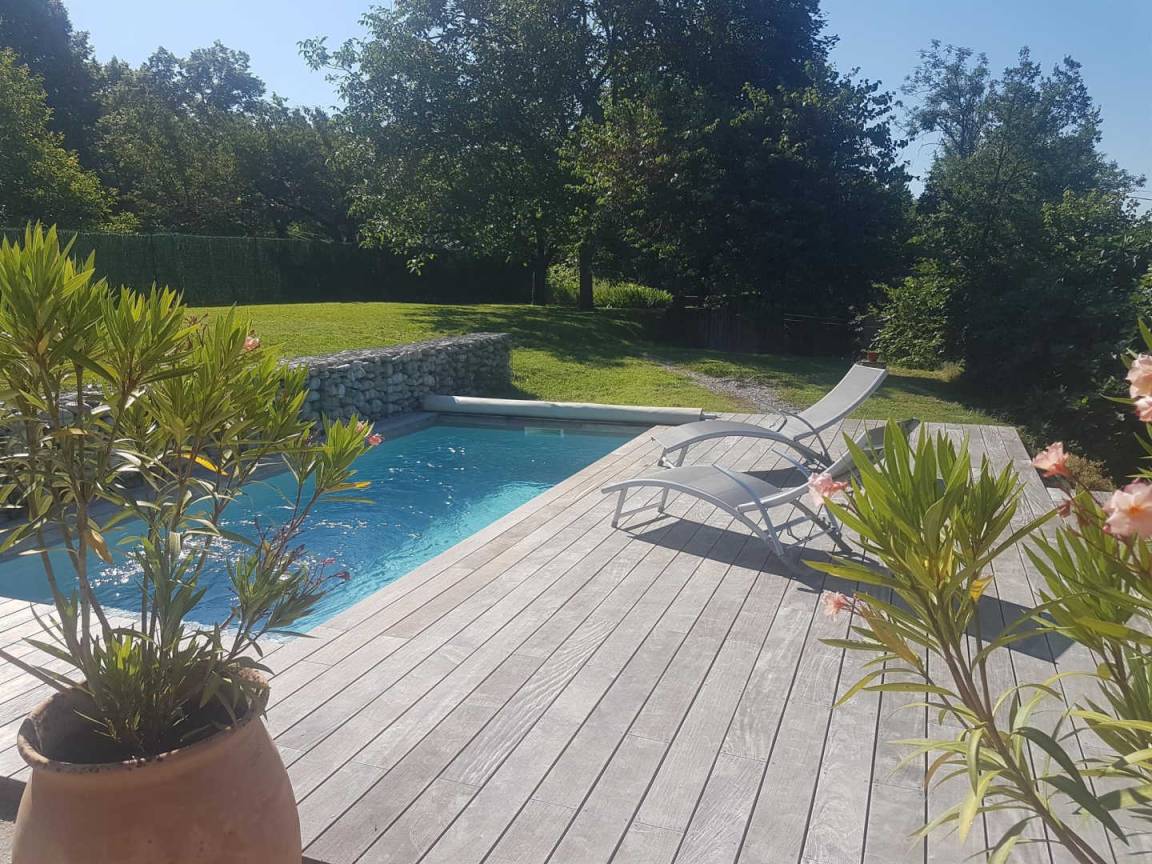 „Le gîte est au calme et très bien équipé. Il est situé à 15 minutes à pied du centre historique.La piscine et les transats privés sont un vrai régal !“