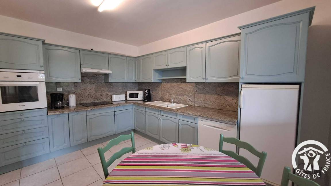 „Nous avons apprecié les beaux volumes de la maison et la fraîcheur de l'intérieur par ce temps caniculaire, ainsi que la possibilité de profiter des produits du potager grace à l'amabilité de l'hôte. La cuisine, fonctionnelle et bien équipée, était adaptée à l'accueil pour 7 personnes, et les petits espaces et propositions de loisirs ont permis à chacun de trouver son compte (le babyfoot a fait la joie des petits et des grands). En plus, l'endroit est calme et la vue impregnable. Quelques regrets pour nous, la manque d'espaces verts (seul terrain de jeu extérieur plat, la zone goudronée devant la maison qui sert de parking), et les horaires de la piscine (de 11h à 20h. On aurait bien apprécié de pouvoir se baigner le matin un peu plus tôt en vue de la chaleur présente).“