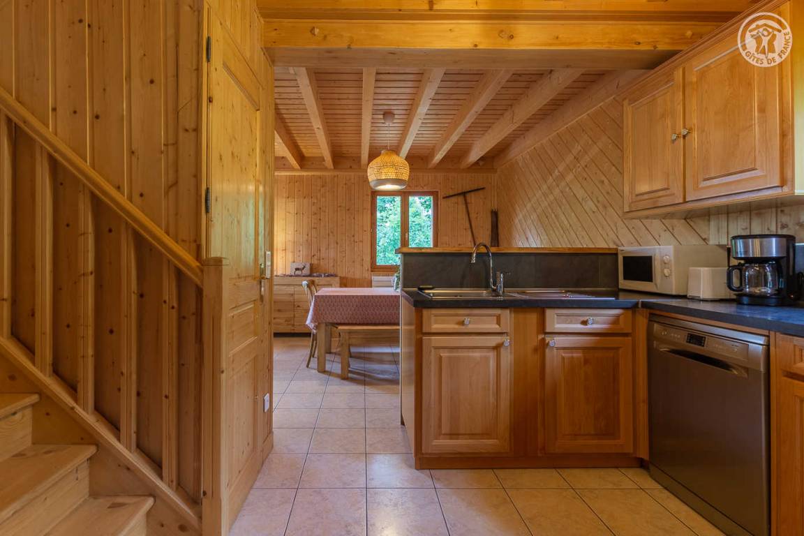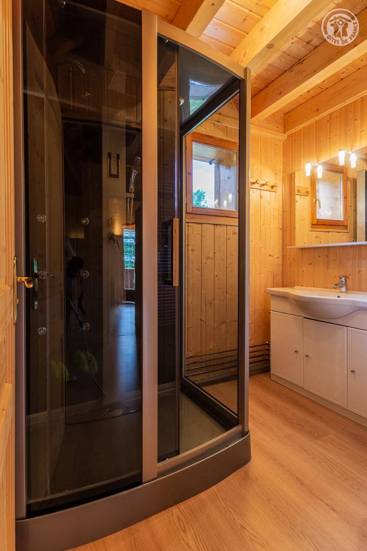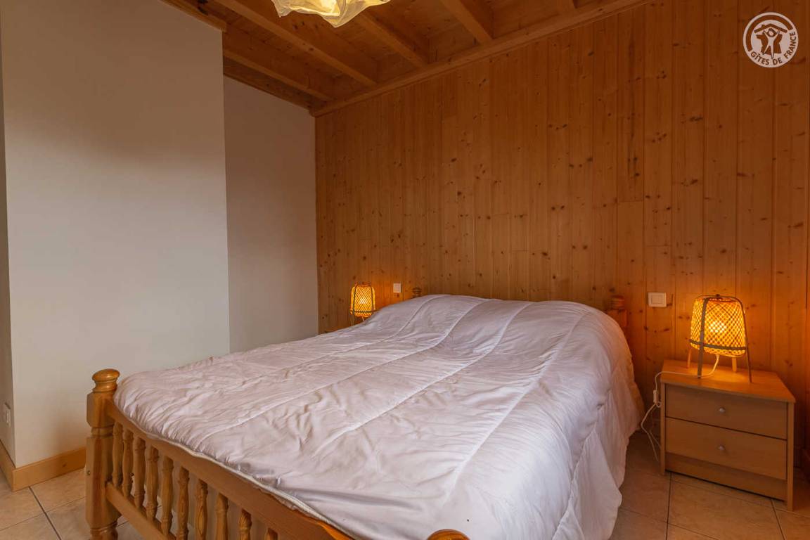 Unabhängiges Chalet auf 3 Ebenen. Im Erdgeschoss: Eingang, große Garage, Waschküche. Im 1. Stock: Eingang, Wohnküche mit Zugang zur Terrasse, Balkon und Grundstück, separates WC, 1 Schlafzimmer (1 Doppelbett 140x190 cm), Badezimmer (Dusche). Im 2. Stock: 2 Schlafzimmer (1 Doppelbett 140x190 cm / 2 Einzelbetten 90x190 + 2 Etagenbetten 90x190 cm), Zwischengeschoss (1 Doppelschlafsofa 140x190 cm), Badezimmer (Whirlpool-Dusche + WC). Außensauna mit privatem Zugang. Privatparkplatz (3 Autos). Plancha/Grill. Kieshof.