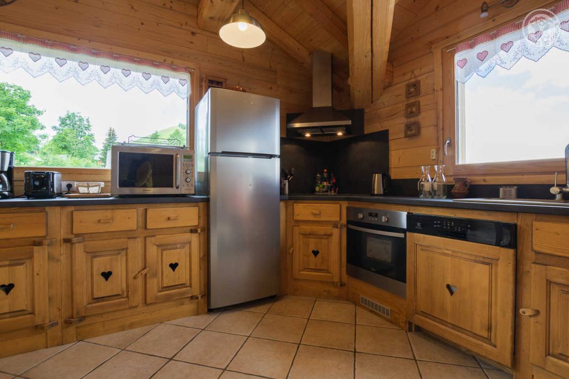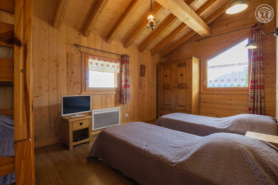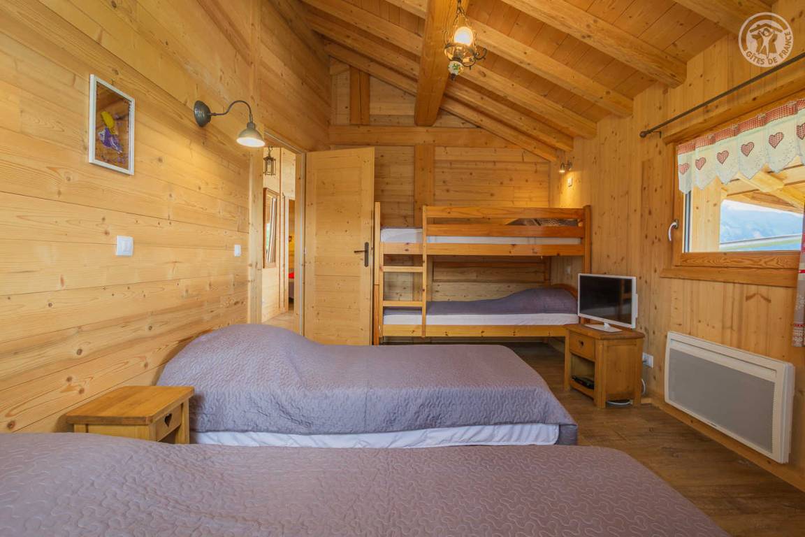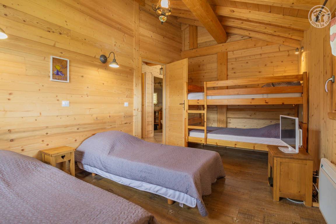 Unabhängiges Chalet neben dem Chalet der Eigentümer, ideal für 8 Erwachsene und 2 Kinder. Auf 2 Ebenen: Im Erdgeschoss: Eingangshalle, separates WC, Waschküche. Im 1. Stock: große Wohnzimmer-Wohnzimmer-Küche, 4 Schlafzimmer (1 Doppelbett 160x200 cm / 1 Doppelbett 160x200 cm / 1 Doppelbett 140x200 cm / 2 Einzelbetten 80x190 cm und 2 Etagenbetten 1 Person in 90x190 cm) , Badezimmer (Badewanne und WC), Duschbad (Dusche und WC). Balkon-Terrasse von 15 m². Boden.