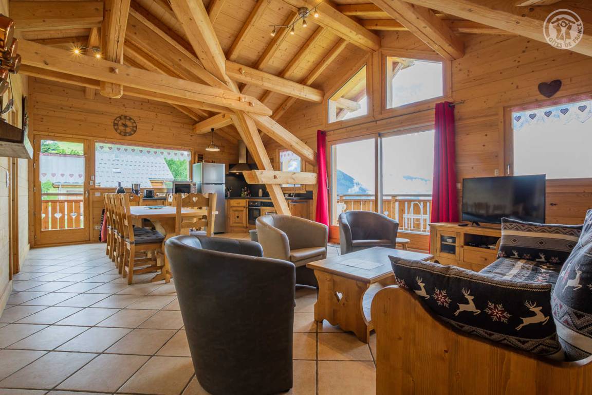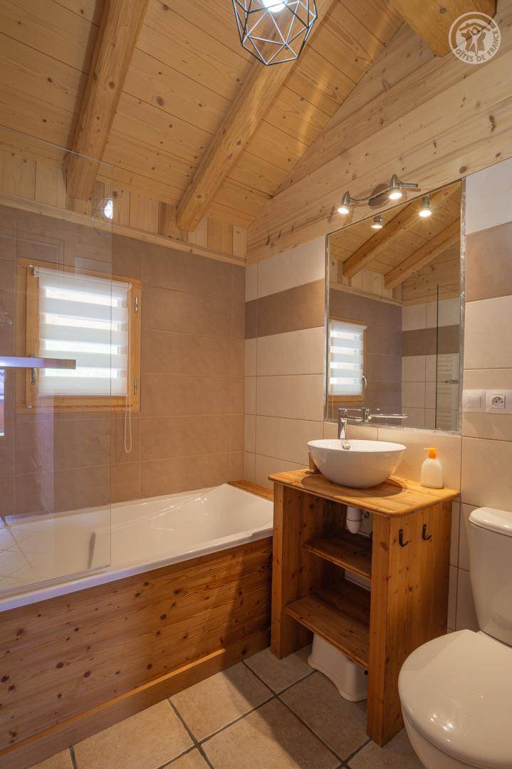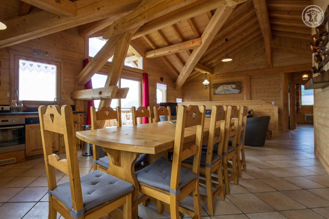 „Très joli chalet dans un village préservé des usines à sports d hivers. Beau séjour spacieux. Les chambres ne sont pas très grandes. Propriétaire à côté très sympathique et discret“