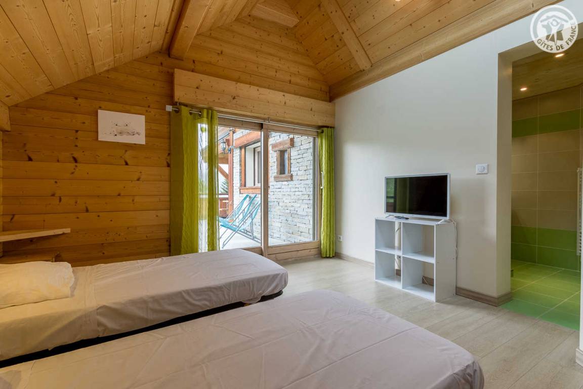 4 Unterkünfte + Sportgeschäft im Haus der Besitzer. Im 1. Stock: Wohnzimmer-Küche und Wohnzimmer (2 Einzel Ausziehbetten), 5 Schlafzimmer (2 Einzelbetten 80x190 cm / 1 Doppelbett 140x190 cm und ein Doppelschlafsofa / 1 Doppelbett 140x190 cm / 1 Doppelbett 140x190 cm / 2 Einzelbetten 90x190 cm mit Badezimmer - private Dusche), Badezimmer (Badewanne + Dusche), 2 separate Toiletten. 47 m² große teilüberdachte Balkon-Terrasse, Skiraum mit Schuhtrockner.