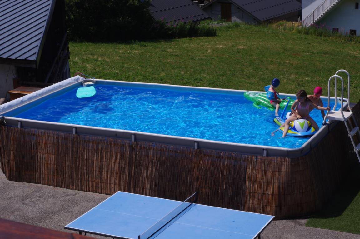 2 Gîtes und 3 Gästezimmer im Haus des Eigentümers. 1. Stock: Wohnzimmer-Küchen-Loungebereich mit Zugang zu einem Balkon. 2. Etage: 2 Schlafzimmer (1 Doppelbett 160 x 200 cm / 2 Einzelbetten 90 x 200 cm), Badezimmer (Badewanne), gemeinsame Waschmaschine auf dem Flur. Balkon. Gemeinsamer Innenhof und Rasenfläche mit Schaukel. Gemeinsame Terrasse (Grill, Tische, Liegestühle). Gemeinsamer oberirdischer Swimmingpool mit Solarheizung (7 m x 3,50 m x 1,20 m). Gemeinsamer Pétanque-Platz. Gesamtnutzfläche: 60 m² inklusive Dachgeschossflächen.