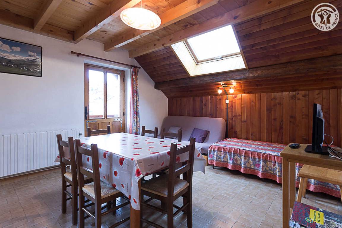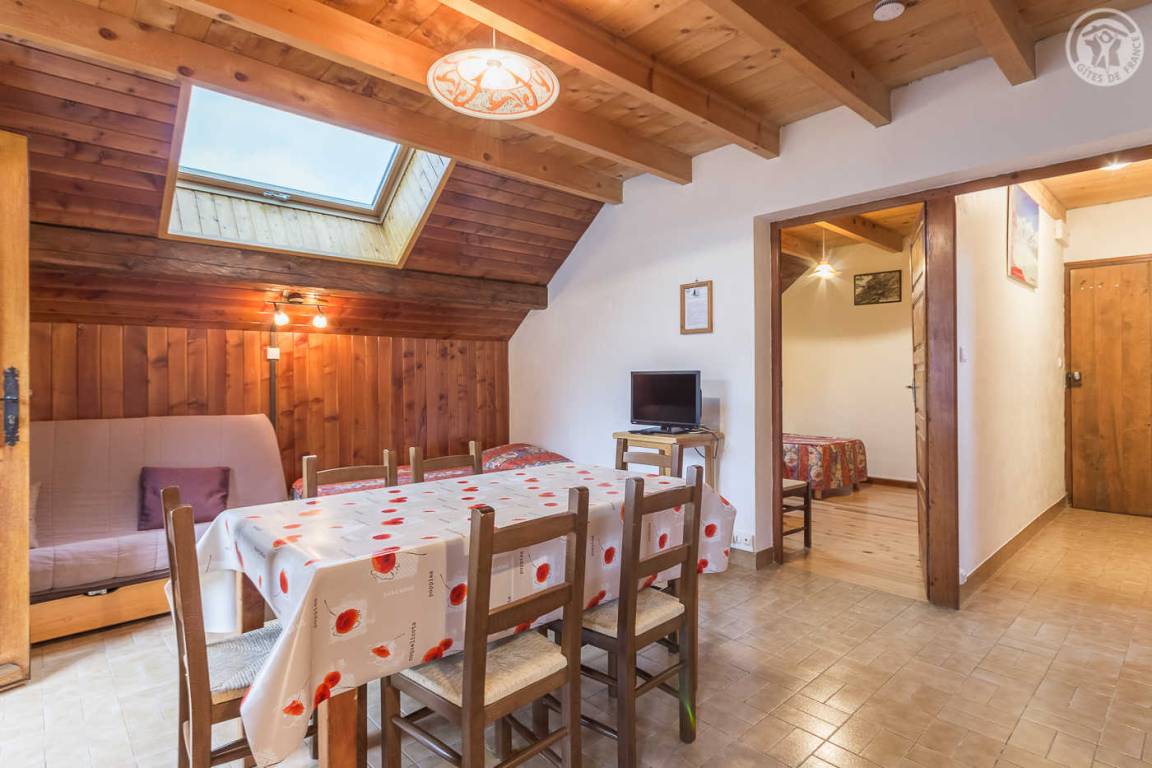 3 Gîtes + 1 Familienunterkunft im Haus. 2. Stock: Wohnzimmer-Küche Lounge-Bereich (1 Einzelschlafcouch), 2 Schlafzimmer (1 Doppelbett / 2 Einzelbetten), Badezimmer (Badewanne), separates WC. Gemeinsame Waschmaschine. Balkon. Hof + kleine Gemeinsamkeit. Gesamtwohnfläche 48 m² Dachgeschoss inklusive. Skigebiet Albiez 100 m, St. Jean d'Arves/Les Sybelles 13 km. Schneeschuhe vor Ort. Gewässer Col du Mollard 2,5 km.