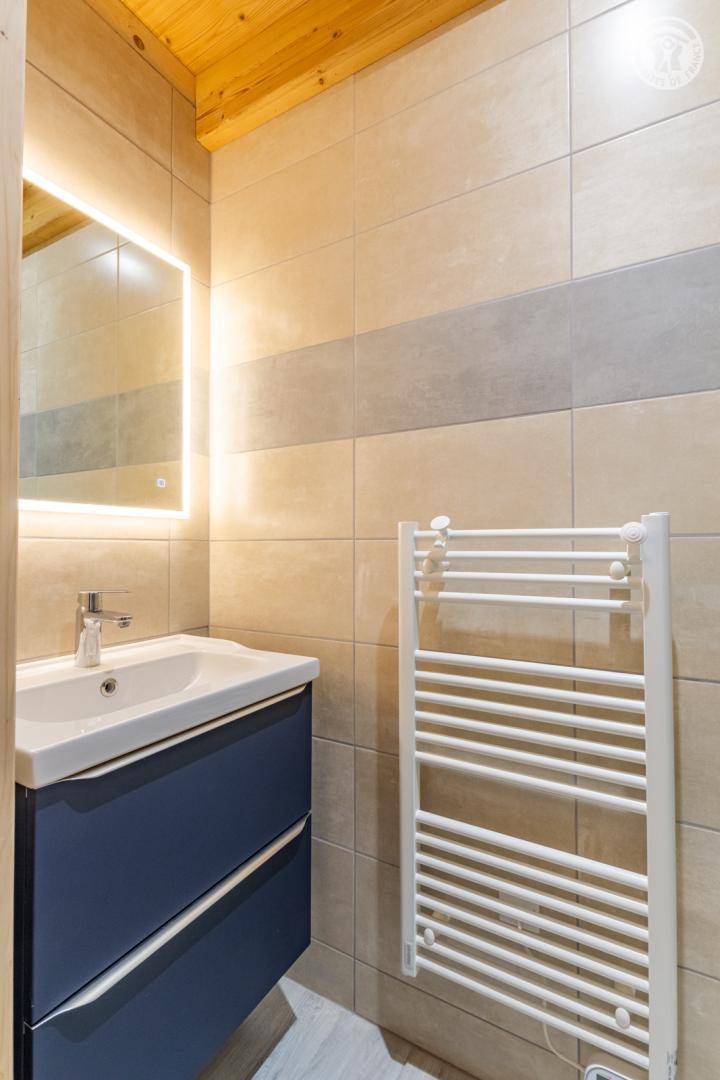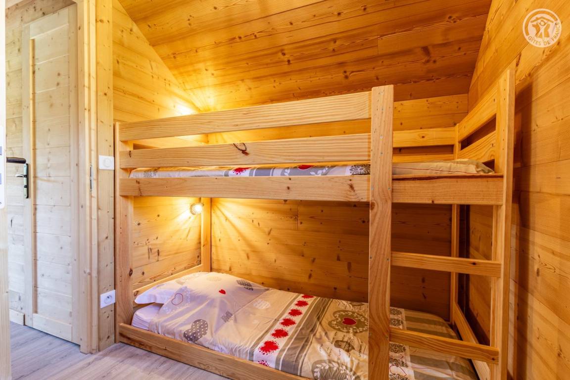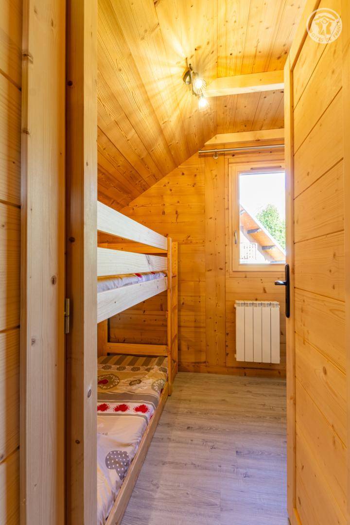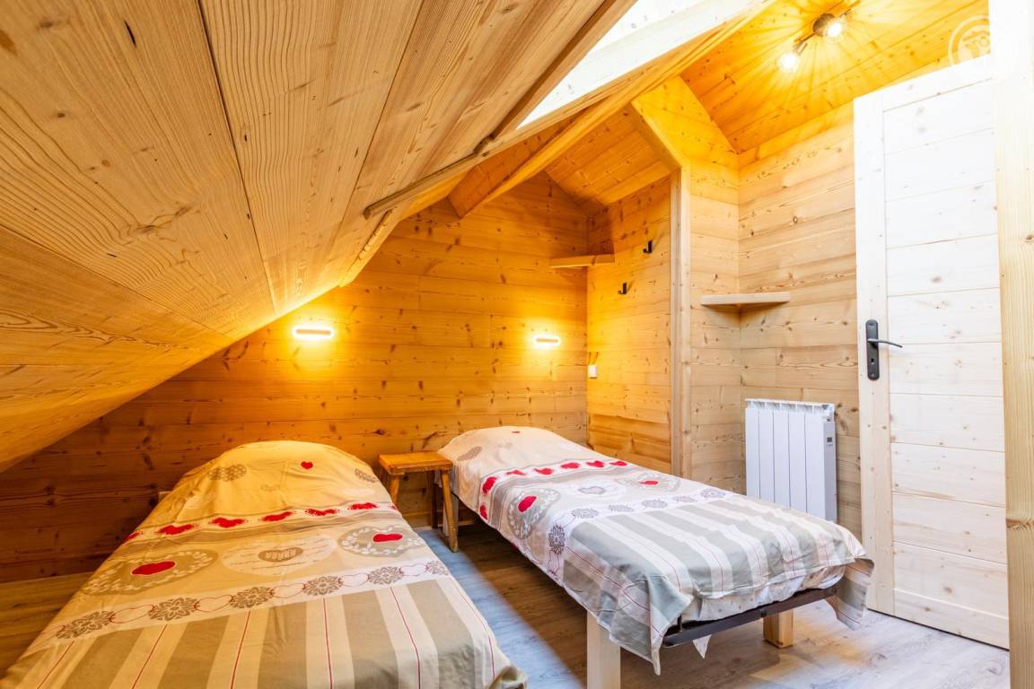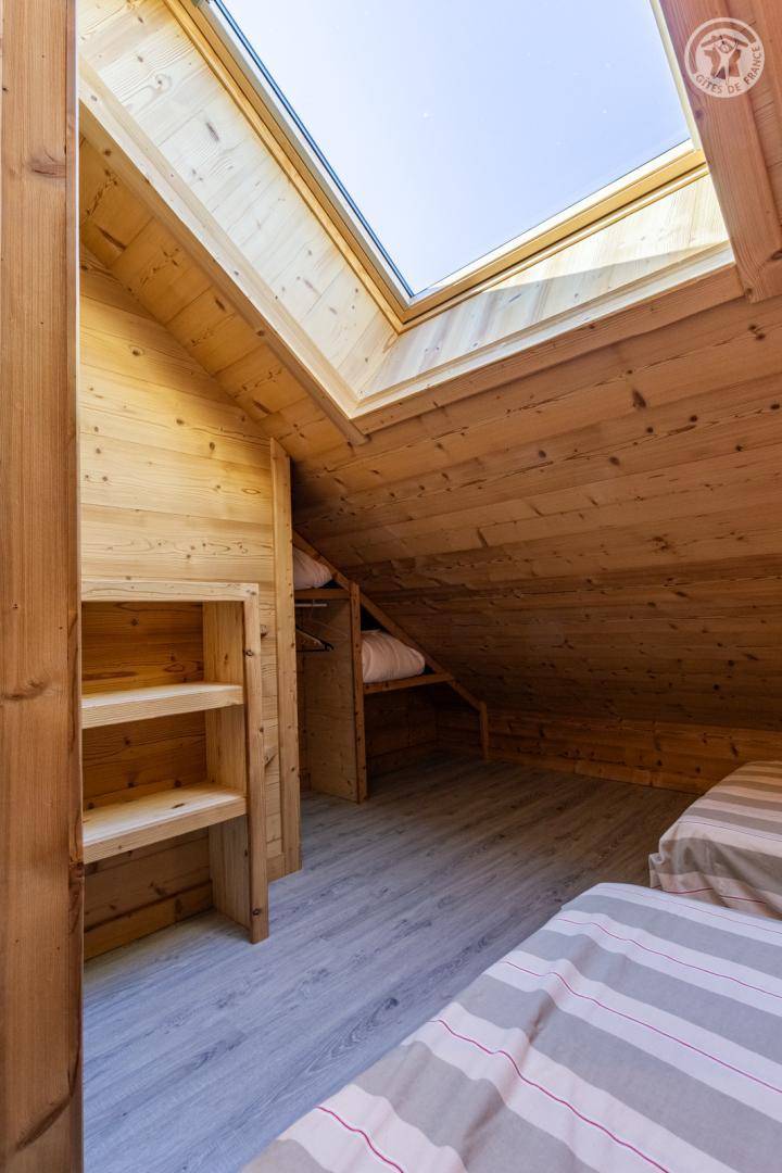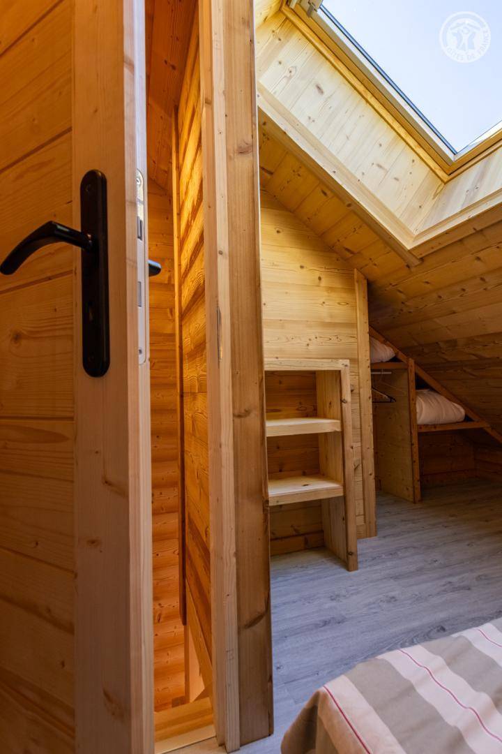 4 Ferienhäuser und ein Sportgeschäft im selben Gebäude. 2. Etage: Wohnküche mit Sitzecke (2 ausziehbare Einzelbetten 90 x 190 cm), 1 Zwischengeschoss unter der Dachschräge (1 Doppelbett 140 x 190 cm), Badezimmer (Dusche), separates WC. Überdachte Balkonterrasse. Waschmaschine und Trockner im Gemeinschaftswaschraum in 200 m Entfernung (kostenpflichtiger Zugang: 1 Gratis-Token; darüber hinaus kostenpflichtige Token). Gemeinsames Grundstück in 200 m Entfernung mit Grill und Essbereich im Freien. Gesamtnutzfläche: 30 m² inklusive Dachgeschossflächen.