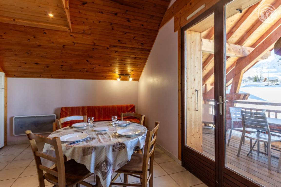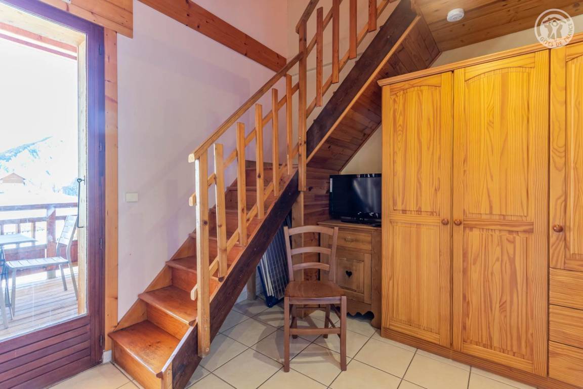 3 Gîtes + Sportgeschäft im Haus des Eigentümers. 2. Stock: Wohnzimmer mit Küchenbereich (2 ausziehbare Einzelbetten), WLAN-Verbindung, 1 Mezzanine unter dem Dach (1 Doppelbett), Badezimmer (Dusche), separates WC. Geschützte Balkonterrasse. Waschmaschine + Trockner in gemeinsamer Waschküche 200m entfernt. Gemeinsames Gelände auf 200m. Gesamtwohnfläche: 28 m² Dachgeschoss inklusive. Skifahren Albiez vor Ort, St. Jean d'Arves/St. Sorlin/les Sybelles 13 km entfernt.