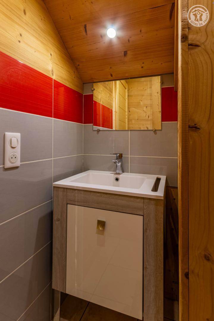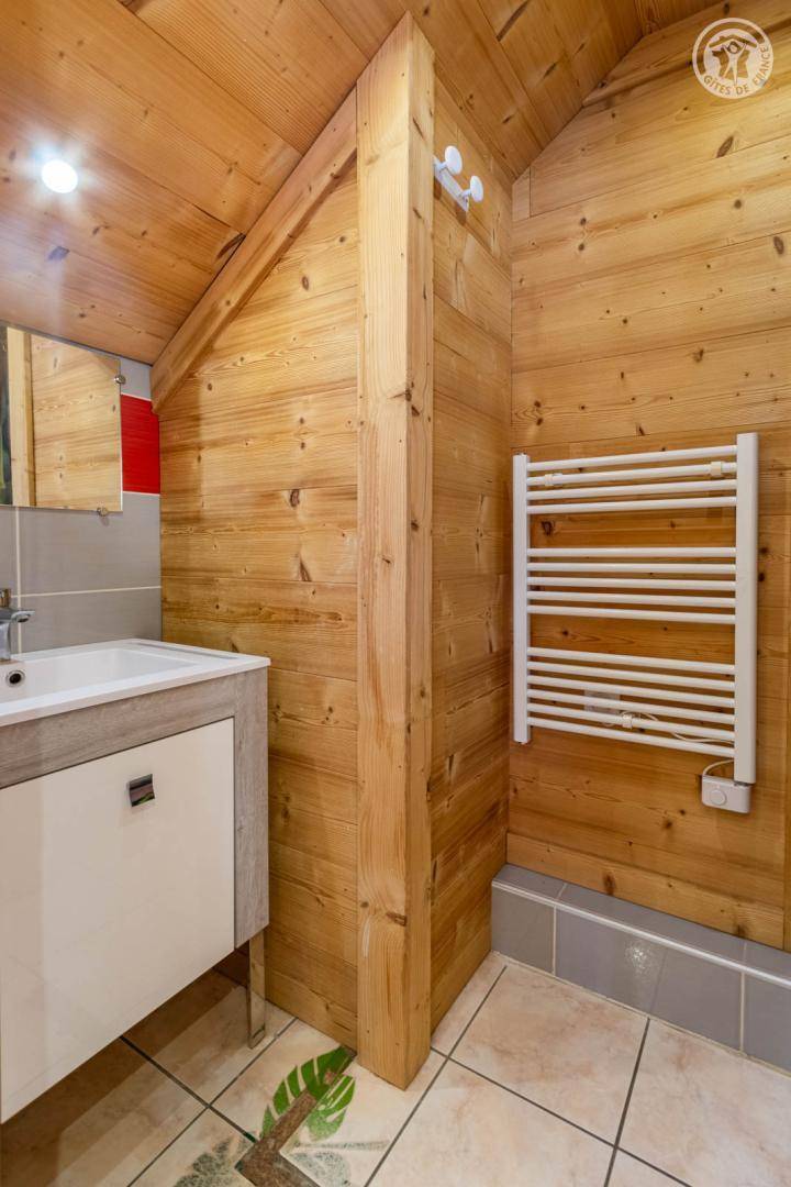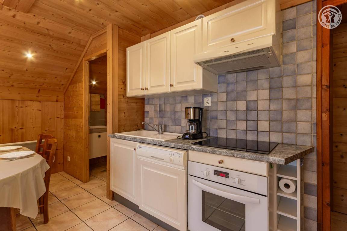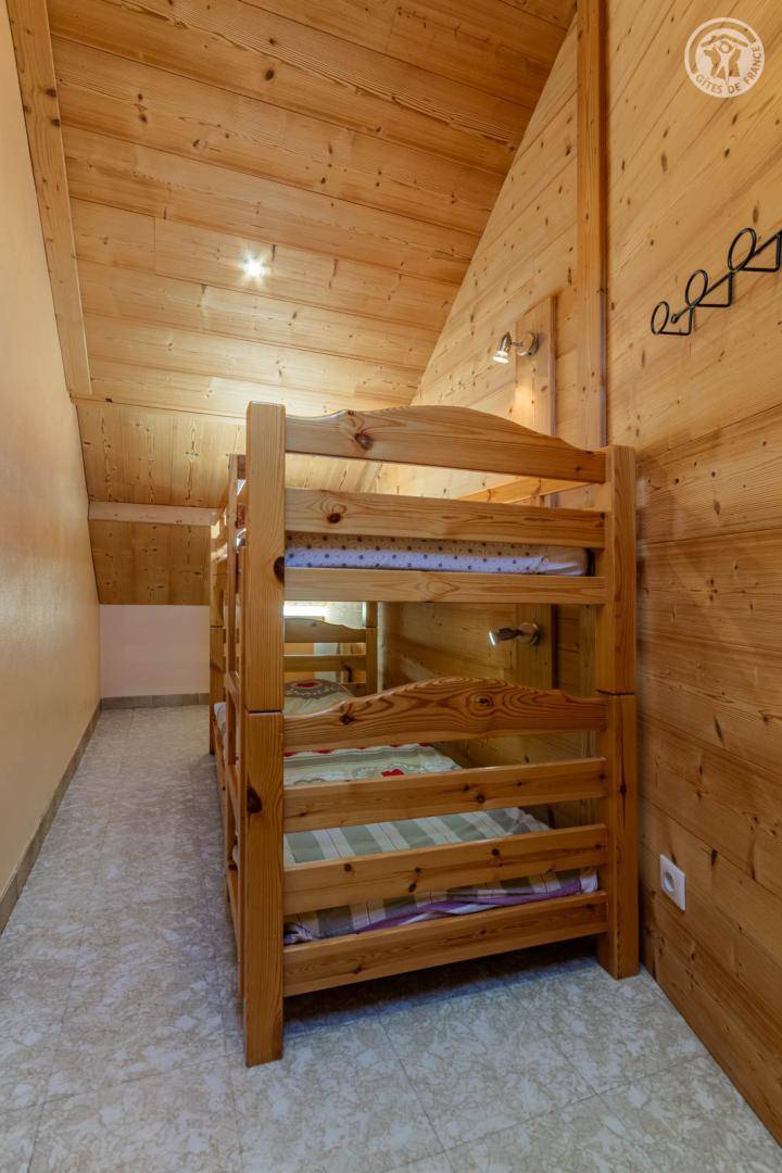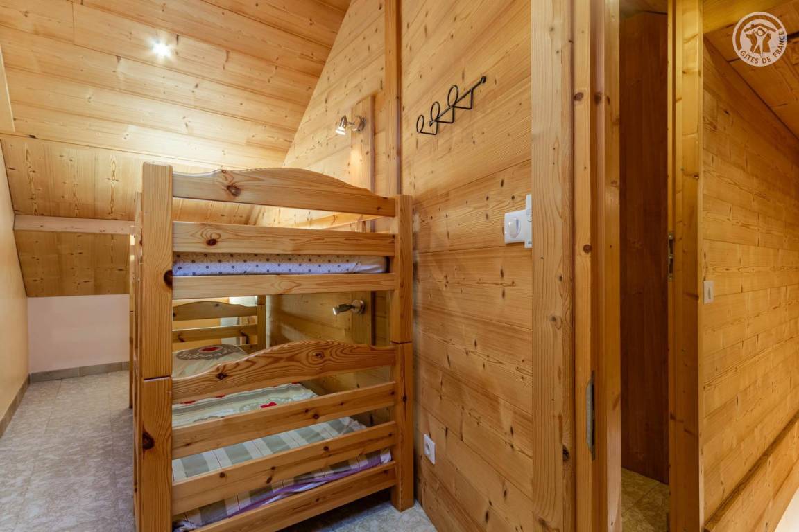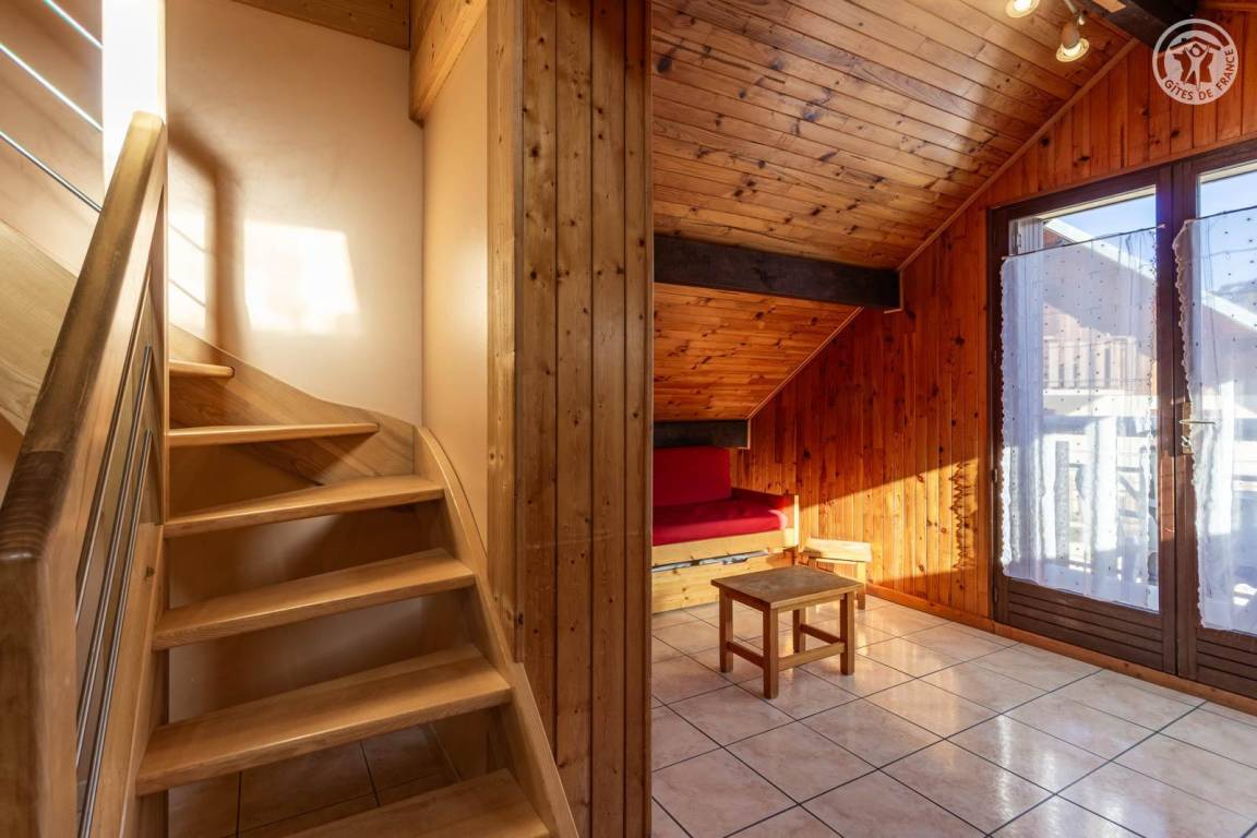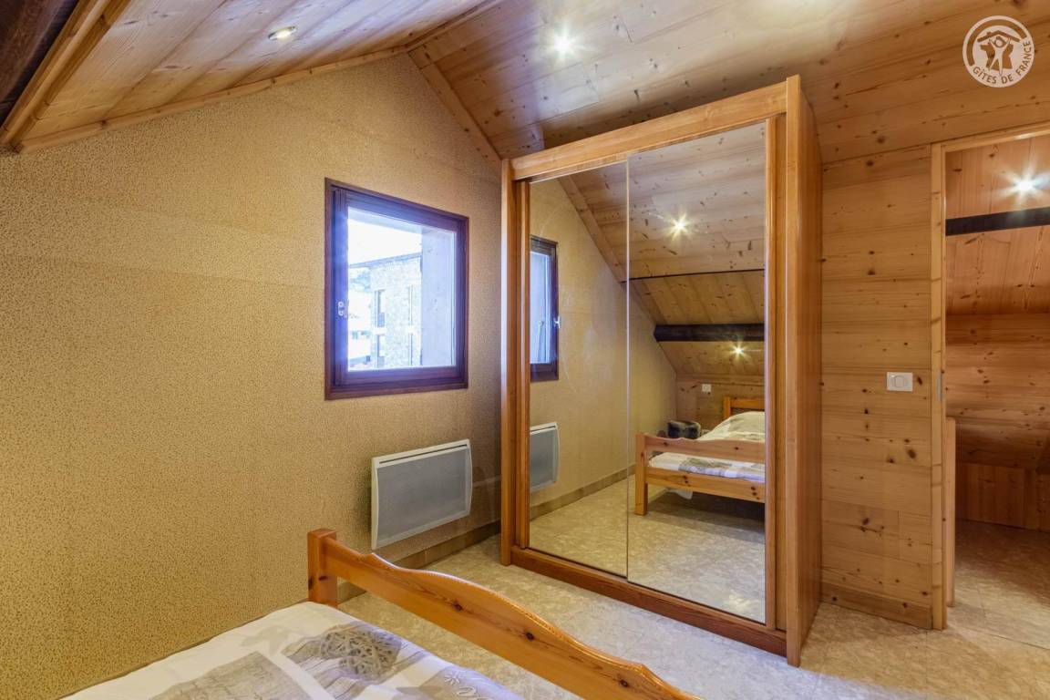 4 Ferienhäuser und ein Sportgeschäft im selben Gebäude. 2. Etage: Wohnküche (2 ausziehbare Einzelbetten 90 x 90 cm), 1 Schlafzimmer (1 Doppelbett 140 x 190 cm), 1 Schlafzimmer im Untergeschoss (2 Einzelbetten 90 x 190 cm), Badezimmer (Dusche), separates WC. Balkon. Waschmaschine und Trockner im Gemeinschaftswaschraum in 200 m Entfernung (kostenpflichtiger Zugang: 1 Gratis-Token; darüber hinaus kostenpflichtige Token). Gemeinsames Grundstück in 200 m Entfernung mit Grill und Essbereich im Freien. Gesamtnutzfläche: 45m² inkl. Dachgeschossflächen.