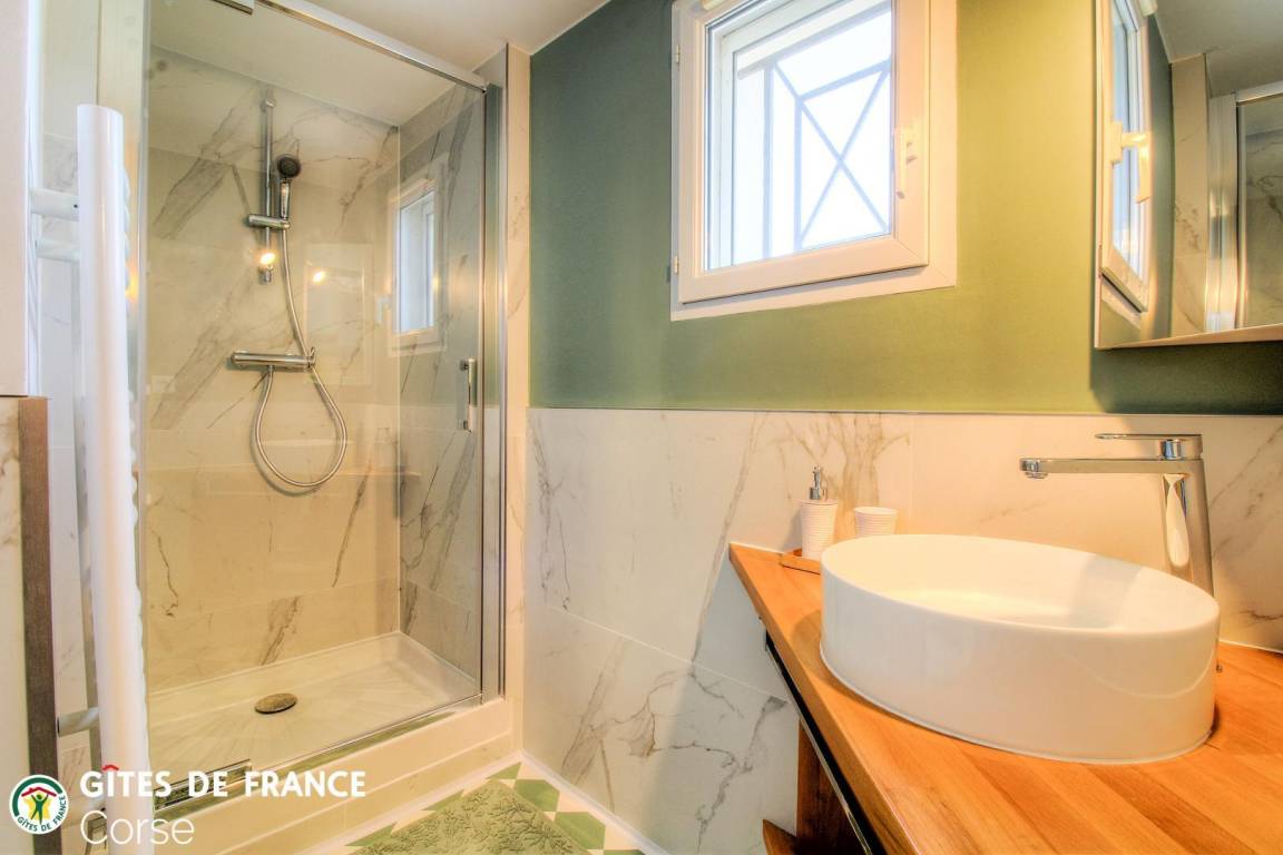 „La location est loin d'être stratégique, et surtout loin de tout. Pour y accéder, la route est très sinueuse, ce qui est étourdissant. Il faut compter 1h30aller-retour pour une boulangerie, pharmacie, etc. … Pizzeria SOTTU E STELLE A Bisina, est à plus de 3 Km et non pas à 800 mètres comme indiqué. La moindre excursion pour explorer prendrait 3 à 6h A/R. Pas de Wifi ni de réception pour les portables. Pas de vue de l'intérieur, sauf d'une petite fenêtre, debout dans la salle de bain. Pas d'intimité, parce qu'ils débarquaient chez nous sans prévenir. Le tableau électrique se trouve dans la chambre à hauteur de la tête du lit, inaudible dans la journée, mais la nuit c'est comme une horloge qui fait tic tic tic tic tic tic sans cesse, il était difficile de s’endormir. Nous avons dû écourter notre séjour au bout de 9 nuits. L’accueil était médiocre et le jour de notre départ, Bernard est resté les bras croisés devant sa télé, ni au revoir ni merci.“