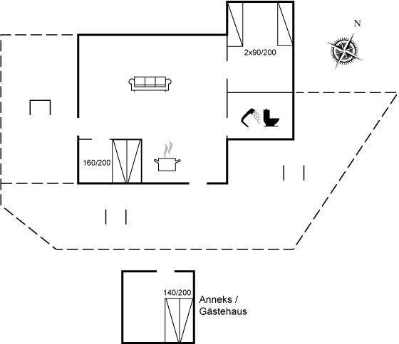 SchlafverhältnisseDie Schlafplätze verteilen sich auf 3 Schlafräume. 4 Schlafplätze in Doppelbetten. 2 Schlafplätze in Einzelbetten. 2 von diesen Schlafplätzen befinden sich im Gästehaus.