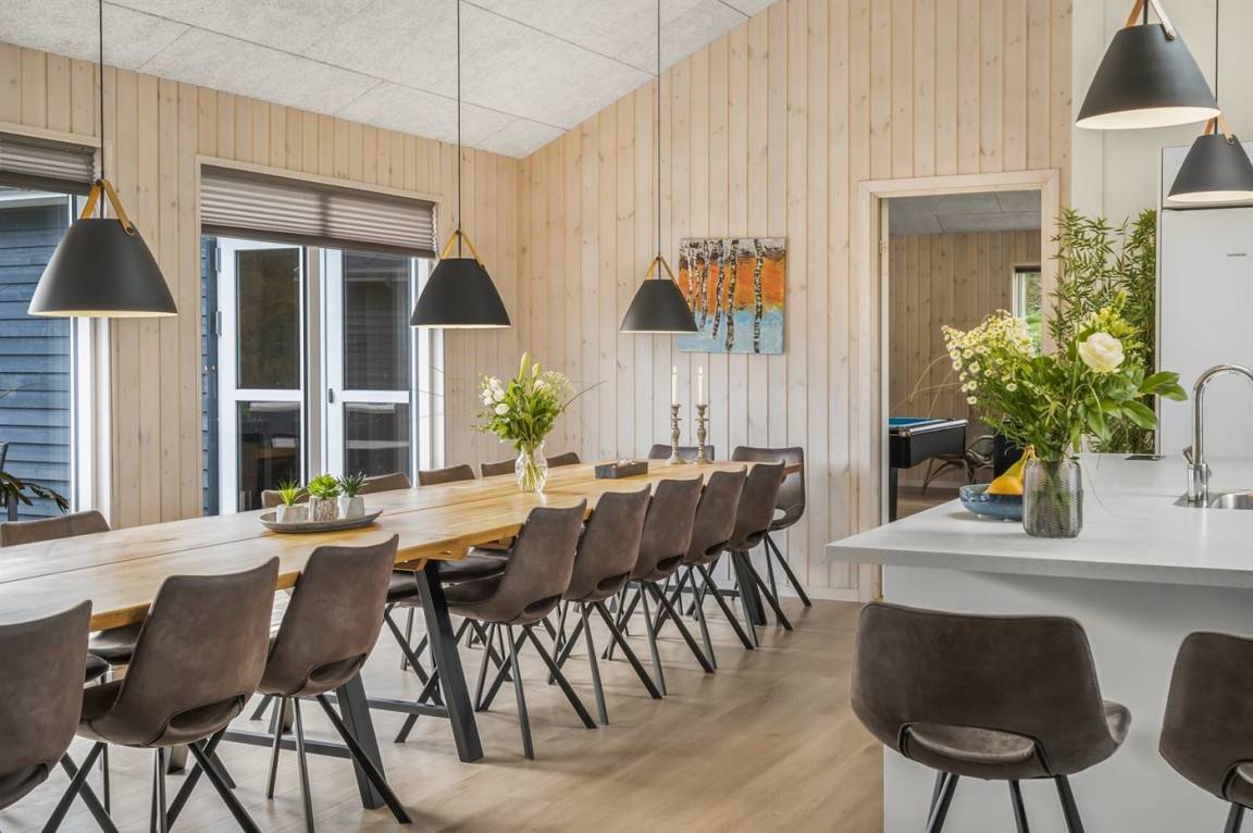 In der Nähe vom schönen Sandstrand, im attraktiven Ferienhausgebiet von Ålbæk liegt dieses schöne Ferienhaus mit Platz für 24 Personen. Hier haben Sie die Möglichkeit, einen Urlaub in entspannter Umgebung und doch in der Nähe der beliebten Stadt Skagen und den vielen Sehenswürdigkeiten Nordjütlands, wie z Råbjerg Mile, das Adlerreservat und den Palmenstrand, zu verbringen.