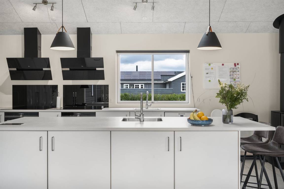 Die ganze Familie kann sich im Aufenthaltsraum um den langen Esstisch versammeln – hier finden Sie auch die schöne Sofagruppe, wo Sie es sich vor dem Kaminofen mit einem guten Buch gemütlich machen können. In der großen und gut ausgestatteten Küche finden Sie zwei Spülbecken, zwei Herde/Backöfen, zwei Geschirrspüler und zwei Kühlschränke.