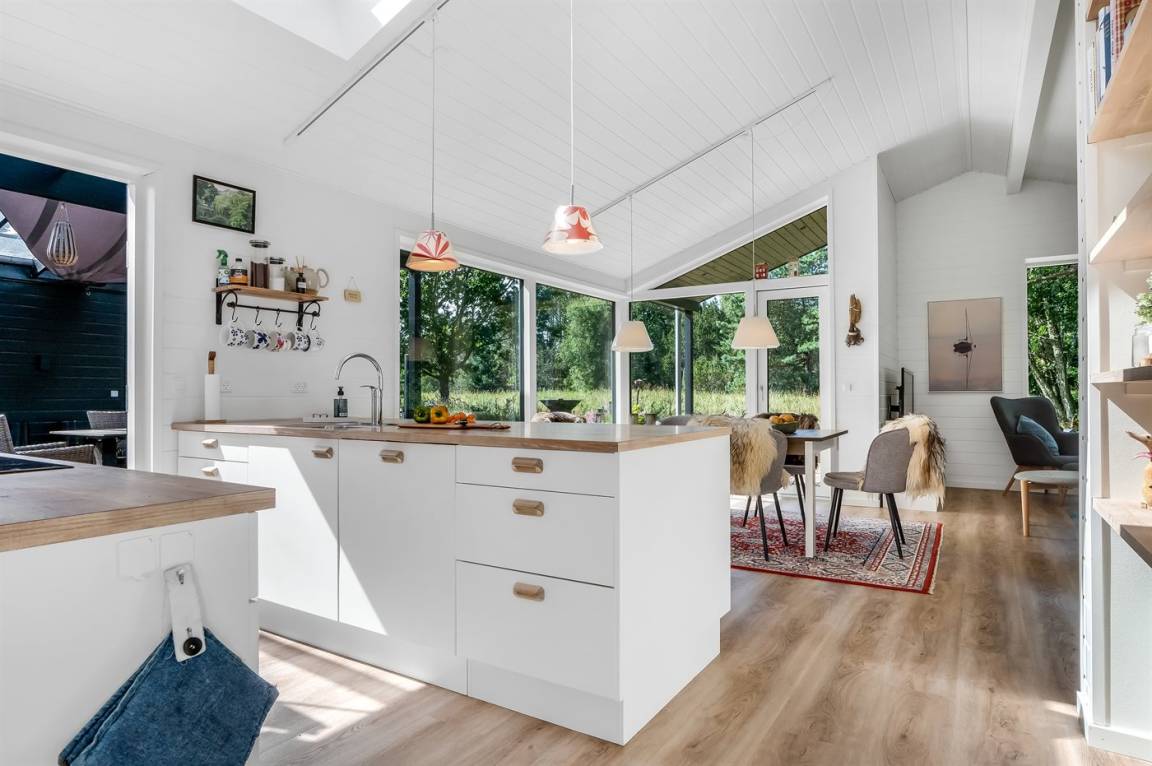 Ein nettes Ferienhaus in dem naturschönen Feriengebiet Bunken, mit einer reichen Tierwelt und guten Möglichkeiten für Spaziergänge – mit oder ohne Hund.