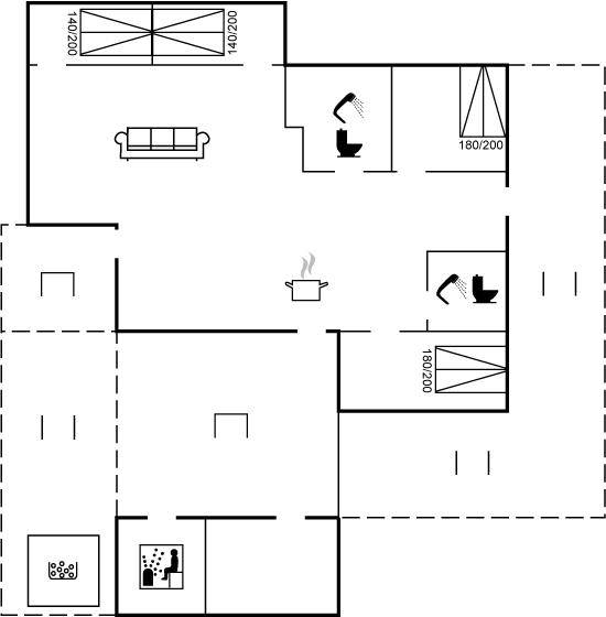 SchlafverhältnisseDie Schlafplätze verteilen sich auf 4 Schlafräume. 8 Schlafplätze in Doppelbetten. 2 Schlafplätze auf Matratzen. 2 von diesen Schlafplätzen befinden sich im offenen Obergeschoss. Ferner steht ein Kinderbett zur Verfügung.