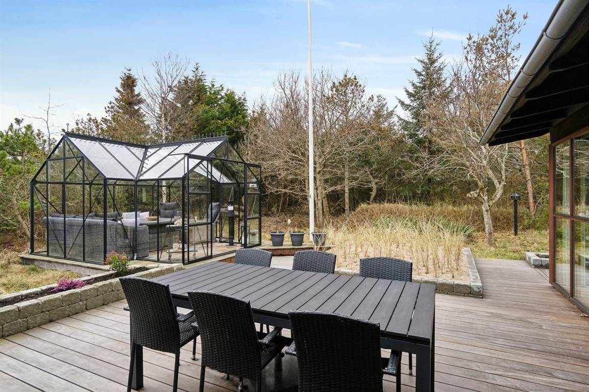 Im Anschluss an die Terrasse findet man eine schöne und möblierte Orangerie (Treibhaus) - ein perfekter Ort für das gemütliche Beisammensein an