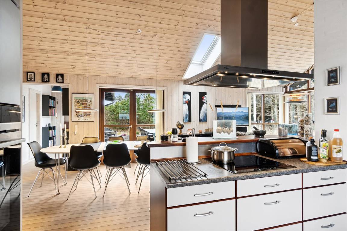 Dieses fantastische Ferienhaus liegt in schöner Natur, mit der Möglichkeit für lange Spaziergänge mit oder ohne Hund. Das Haus liegt nur einen Katzensprung vom schönen Strand entfernt und eine kurze Fahrt vom Zentrum von Skagen und dem Hafen entfernt, der mit einer wirklich gemütlichen Atmosphäre besticht. Das Haus liegt auch nicht weit von der Stadt Frederikshavn entfernt, wo es gute Einkaufsmöglichkeiten und einen großen Fährhafen gibt.
