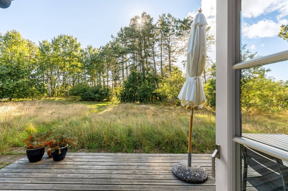 Ferienhaus auf einem großen Naturgrundstück in ruhiger Umgebung, wo ihr reichliche Gelegenheit habt, die Natur und die Tierwelt in der Nähe der Råbjerg Mile zu genießen.