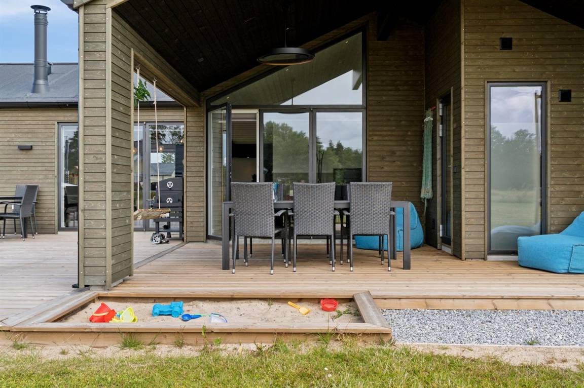 Das große Grundstück lädt zum Spielen ein und bietet reichlich Platz, um z. B. Wikingerspiel zu spielen, falls dieses mitgebracht wird. Das Haus liegt in der Nähe von guten Wanderwegen und nur 300 Meter von einem schönen kinderfreundlichen Strand entfernt.
