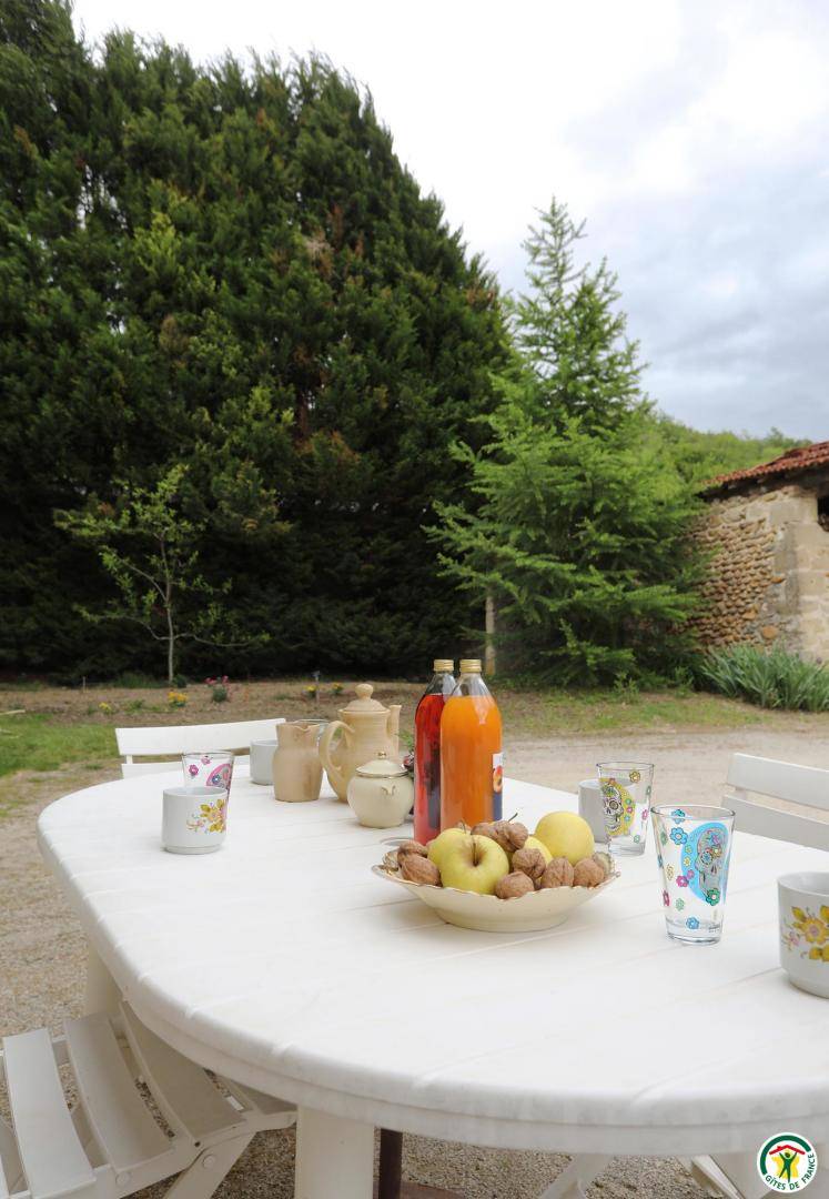 "In einem grünen Weiler in einem alten Bauernhaus gelegen] hier können Sie das Obst der Saison kosten. An die Wohnräume des Vermieters angrenzendes Haus (200 m von der A7 entfernt)."