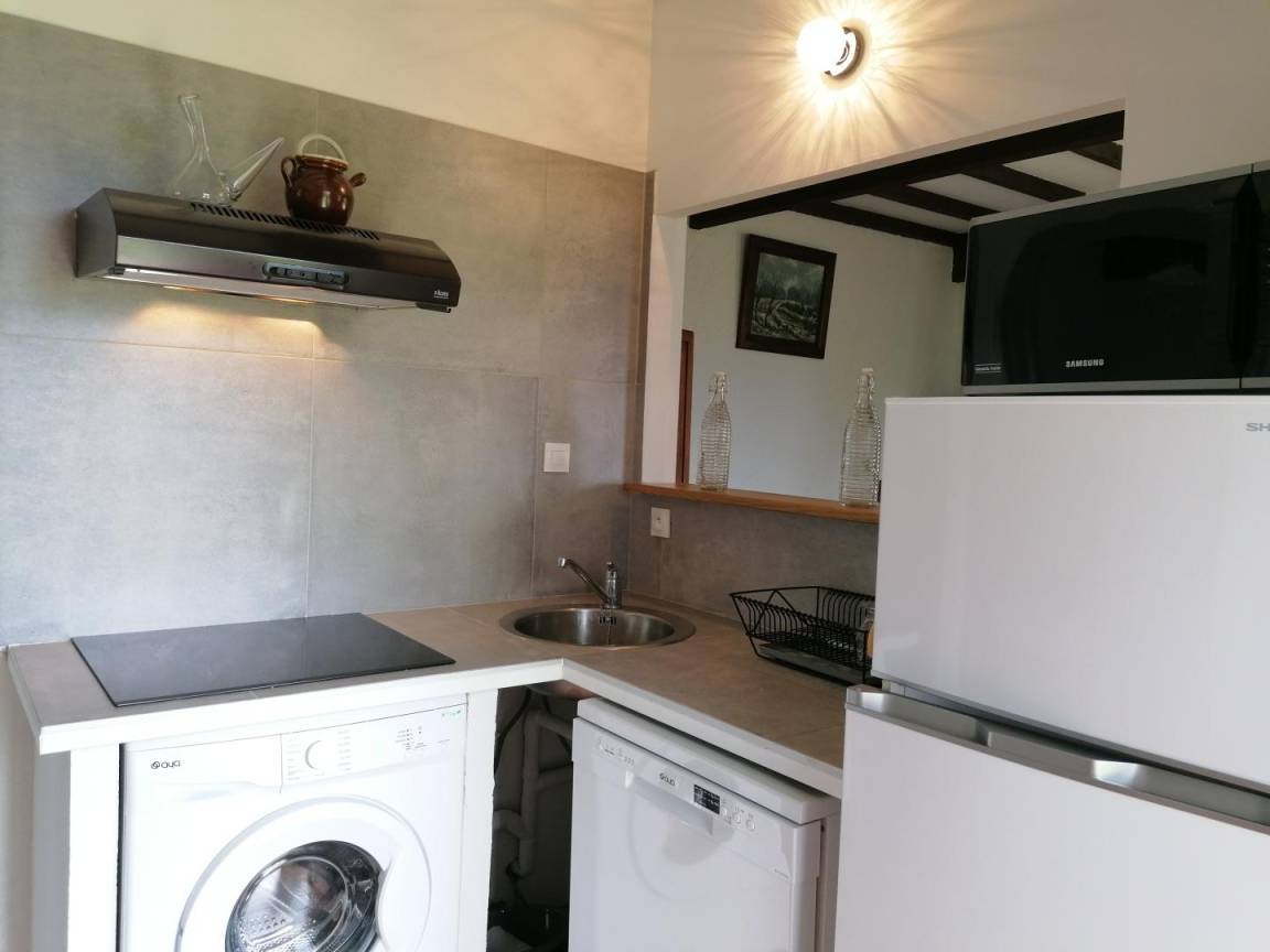 „Niché en un site perché absolument calme, le gîte est à découvrir pour sa qualité environnementale (sentiers, pistes, routes,...) quelques claquements dans la toiture (métallique), de nuit, dus sans doute aux variations thermiquesbons équipements, salon salle à manger confortables.“