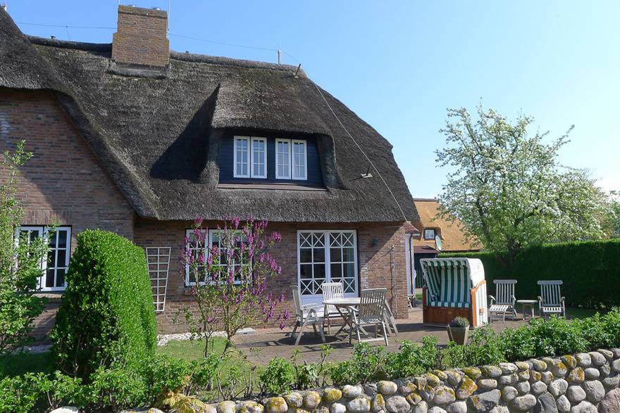 Ihr Urlaub im Haus Alkersum. In dieser Doppelhaushälfte unter Reet werden Sie sich sicher wohlfühlen. Der großzügige Garten und die traumhafte Randlage an der Marsch bieten Ihnen ein Umfeld, wie Sie es auf der Insel Föhr nicht oft wiederfinden. Hier werden Sie gelassen und entspannt Ihren Urlaub verbringen, weit weg vom Trubel der Großstadt. Im kleinen Örtchen Alkersum befindet sich das weitbekannte Museum Kunst der Westküste mit wechselnden Ausstellungen, das immer einen Besuch wert ist. Ein Bäcker, ein Hofladen und ein Reiterhof runden den Ortsdurchgang ab. Wem das nicht reicht, der kommt im nahe gelegenen Friesenort Nieblum sicher auf seine Kosten oder startet gleich ins ca. 5 km entfernt gelegene Städtchen Wyk.
