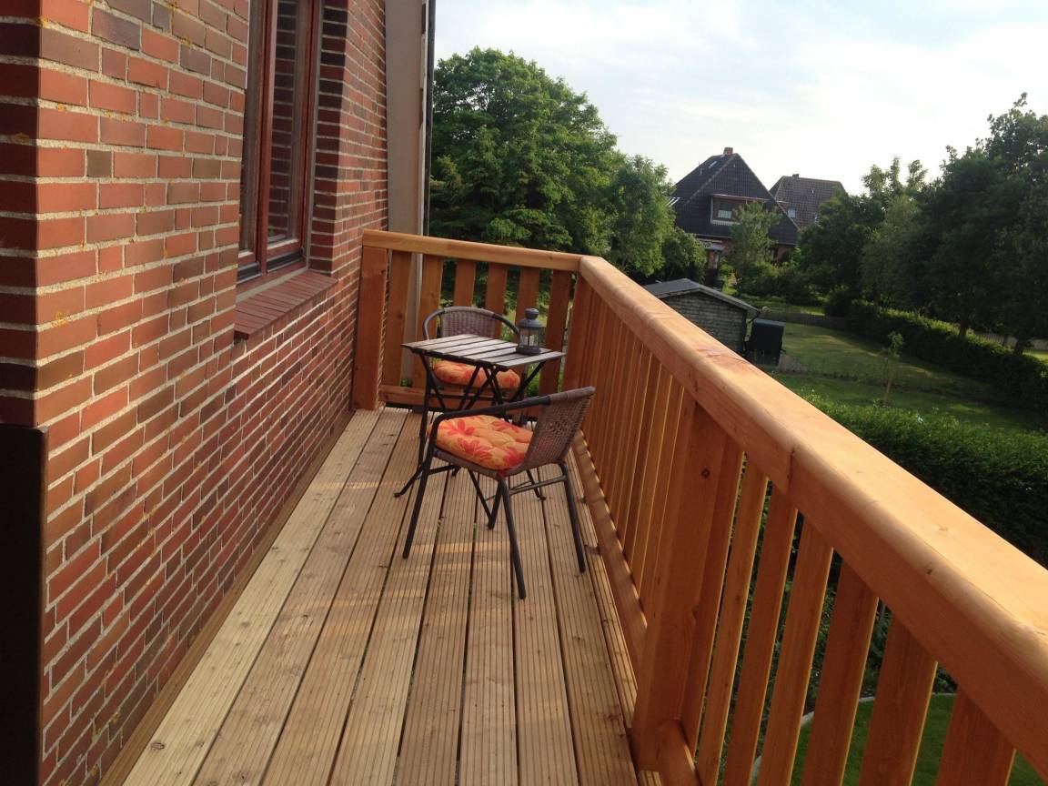 Die „Schwertmuschel" befindet sich im ersten Stock des Hauses und bietet Platz für bis zu 5 Personen. Auf dem grossen Balkon, ausgestattet mit Sitzmöbeln, haben Sie einen schönen Blick auf unseren und weitere Alkersumer Gärten.