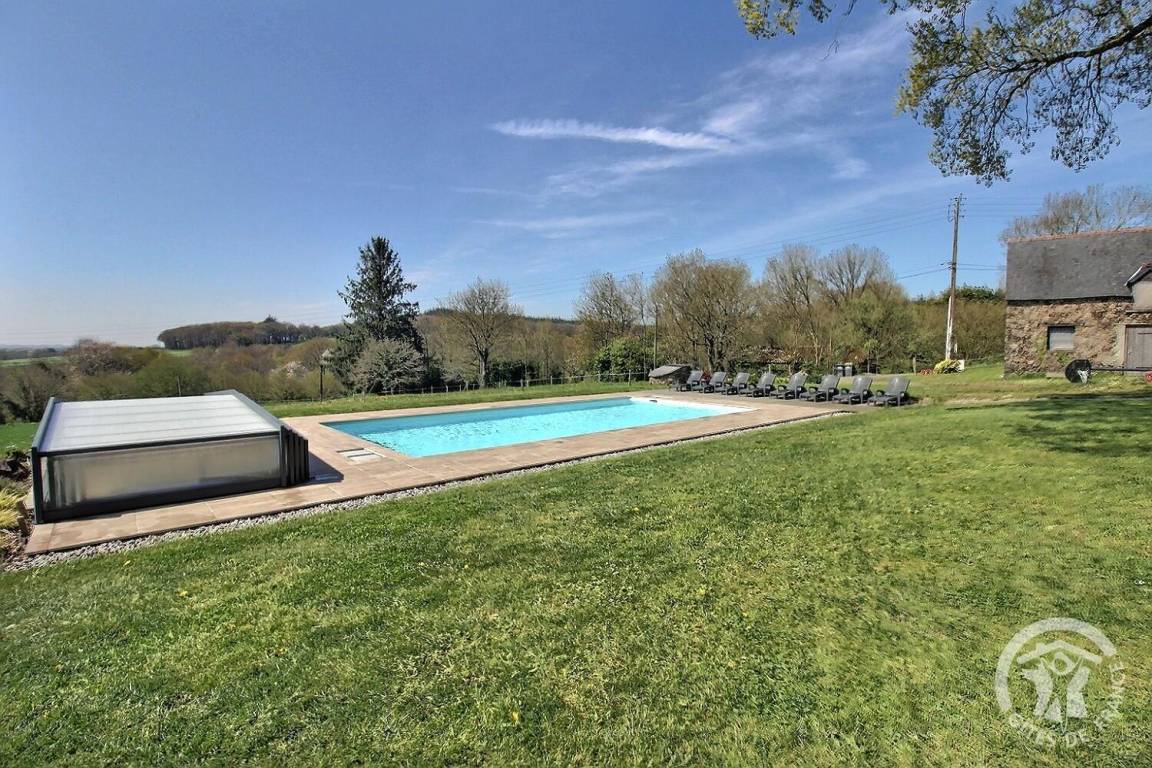 Im Erdgeschoss (behindertengerecht): 1 großes Wohnzimmer (mit TV verbundene Soundbar-Fiber-Netflix) mit voll ausgestatteter Küche, 1 Schlafz-Zi mit 1-Bett 160x200, 1 separate Toilette mit Waschbecken, 1 Bade-Zi mit großem begehbarem Wasser Dusche und 1 Waschküche. Im Obergeschoss 3 Schlafz-Zi mit 2 Betten 90x190 (können zu einem 180-cm-Bett kombiniert werden), 2 Betten 90x190 und 1 Bett 160x200, 1 Bade-Zi mit Whirlpool-Badewanne und Dusche und 1 separates WC. Draußen genießen Sie 1 große landschaftlich gestaltete Grünfläche auf einem Grundstück von 6000 m² (schattig und nach Süden ausgerichtet, das Platz für Pferde bietet) mit einer Terrasse, einem beheizten überdachten Swimmingpool (10 x 5 m), der von Anfang April bis Ende September geöffnet ist Talblick, mit ganzjährig geöffnetem Spa und einer zweiten Nord-West-Terrasse. Große Garage vorhanden (Tischtennis, Darts, Basketball, Boccia...). Für den Empfang von Tieren wenden Sie sich an die Eigentümer. Parkplatz hinter dem Haus möglich.