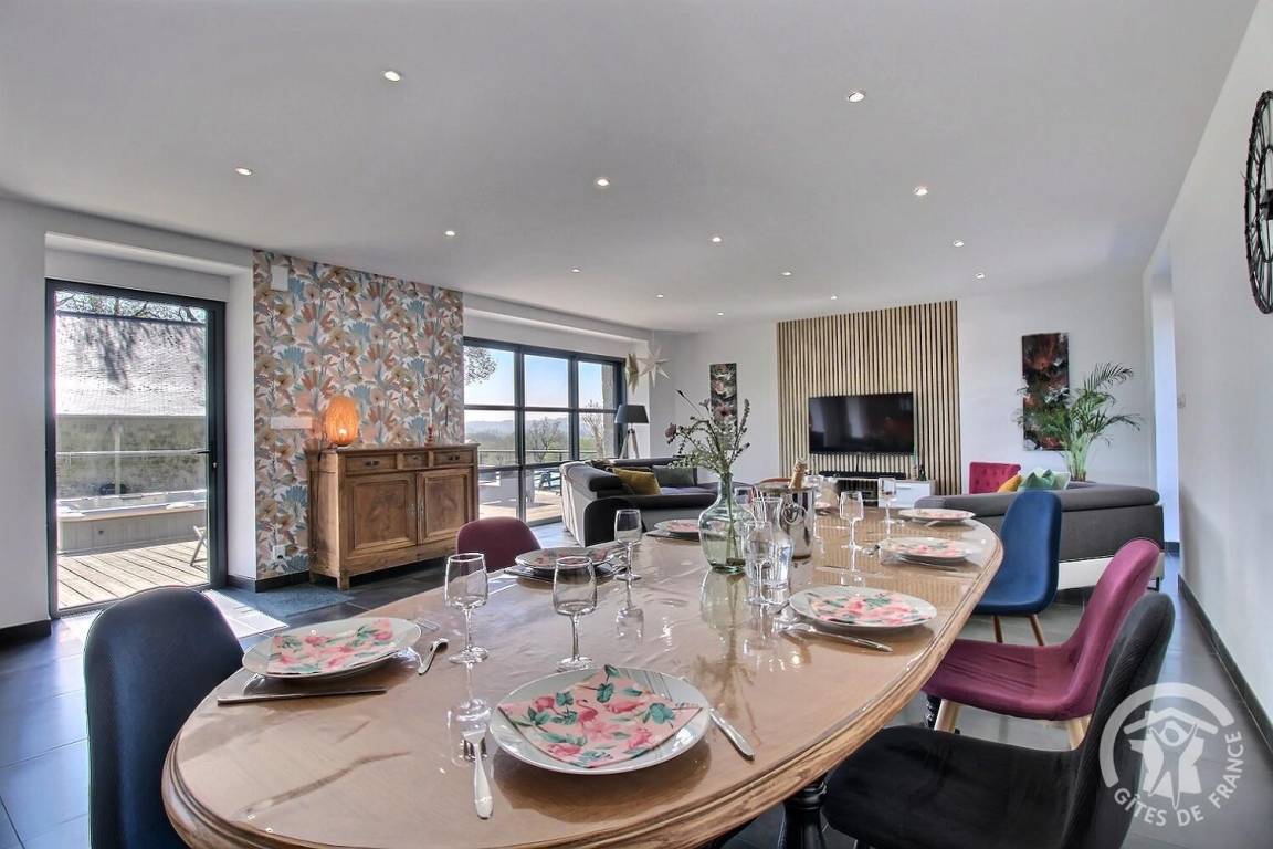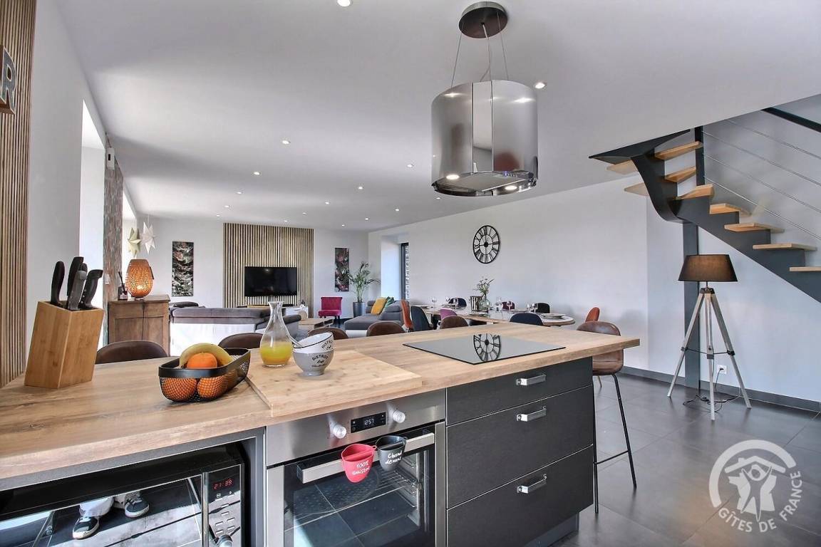 „Nous étions 2 familles et avons beaucoup apprécié le gîte et la qualité de ces prestations ainsi que l'accueil et la bienveillance des propriétaires. La vue est magnifique. C'est très calme et idéal pour passer des vacances détendues. Le gîte est très bien équipé avec une literie de bonne qualité.“