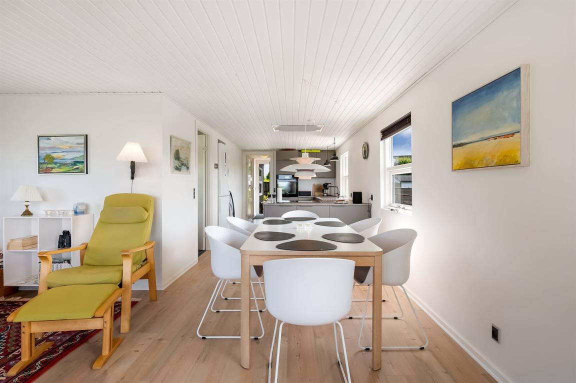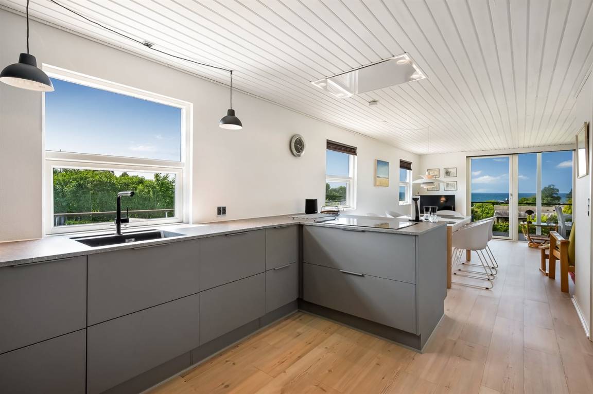 Das Ferienhaus ist geräumig, befindet sich in einem sehr guten Zustand und wurde 2025 umfassend modernisiert – unter anderem mit einer neuen Küche. Das Herz des Hauses ist der schöne Küchen-/Essbereich, der offen mit dem Wohnzimmer verbunden ist. Von hier aus kannst du den fantastischen Meerblick in vollen Zügen genießen. Die hervorragende Lage des Hauses macht sich hier besonders bemerkbar, denn du spürst ganz deutlich die Nähe zum Wasser.