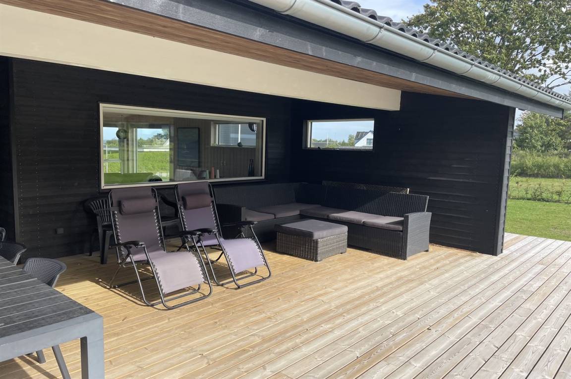 DraußenDie Ferienunterkunft liegt auf einem 1210 m² großen Gartengrundstück. Die Entfernung zum Meer beträgt 400 m. Die nächste Einkaufsmöglichkeit liegt 3500 m entfernt. Es steht ein offenes Terrassenareal zur Verfügung. Außerdem gibt es überdachte Terrasse. Es ist ein Ladestecker für Elektroautos installiert. Parkplatz auf dem Grundstück.