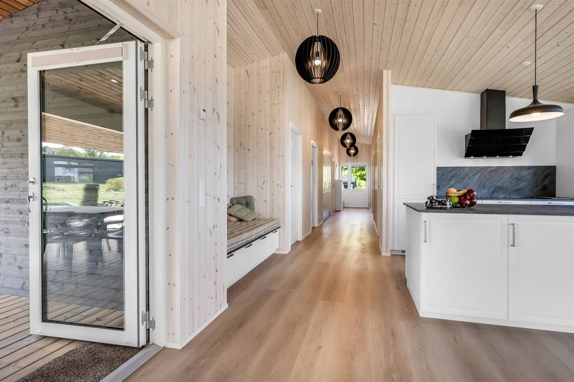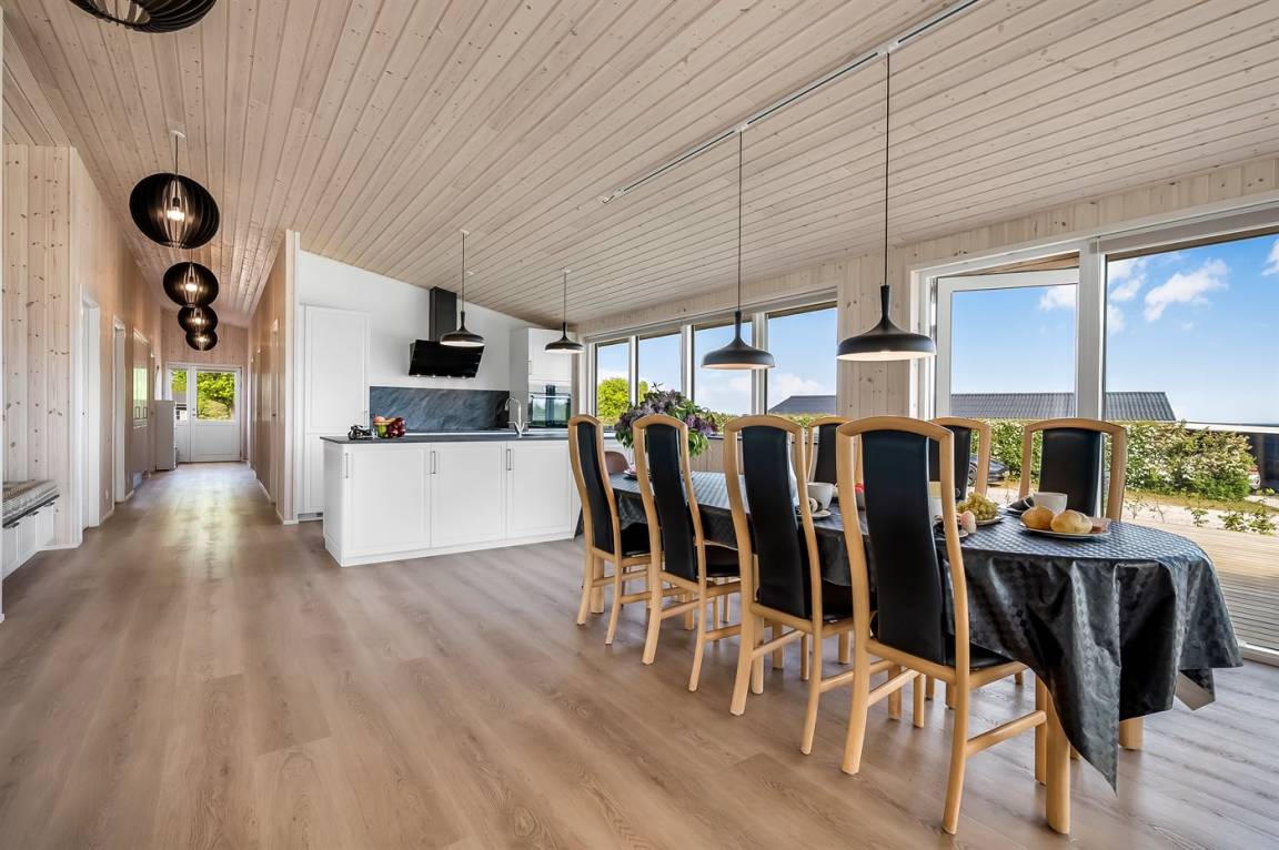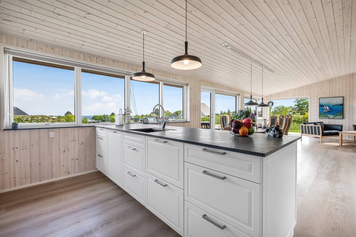 Das Ferienhaus hat einen durchdachten Grundriss und ist daher ideal für zwei Familien oder für eine Familie, die die Großeltern mit in den Urlaub nimmt. Der Mittelpunkt des Hauses ist der fantastische Küchen- und Essbereich, der mit dem gemütlichen Wohnzimmer kombiniert ist. Von hier aus kannst du den schönen Blick auf das Meer und die Umgebung genießen. Die Aussicht ist übrigens von mehreren Stellen im Haus absolut beeindruckend.