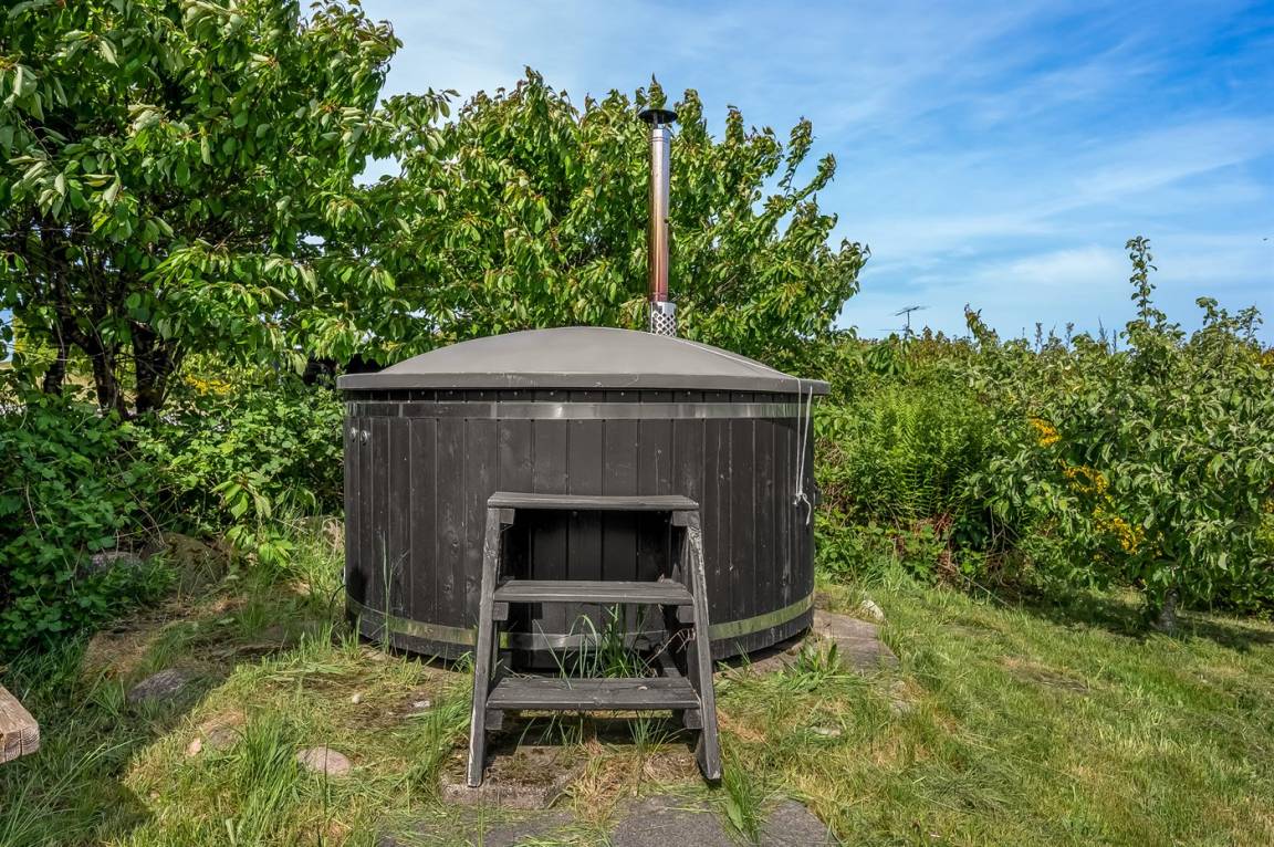 Auf mehreren Seiten des Hauses gibt es herrliche Terrassenbereiche, die zu vielen Stunden im Freien einladen – hier findet sich immer ein geschütztes Plätzchen, um die schöne Umgebung zu genießen. Zudem gibt es einen Hot Tub mit Platz für die ganze Familie, von dem aus man ebenfalls den traumhaften Meerblick genießen kann.