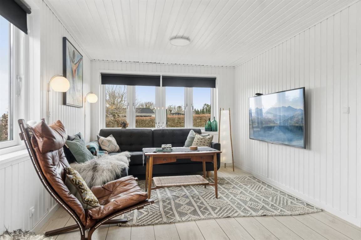 Multimedien2 Smart-TV. 1 Apple-TV.1 Bluetooth-Lautsprecher. 1-3 dänische Fernsehsender. Es steht kabellose Internetverbindung zur Verfügung.
