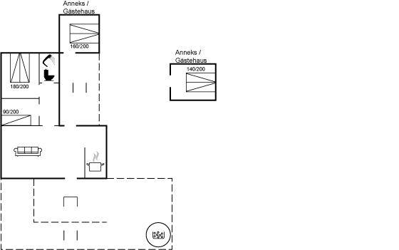 SchlafverhältnisseDie Schlafplätze verteilen sich auf 4 Schlafräume. 6 Schlafplätze in Doppelbetten.1 Schlafplatz in einem Einzelbett. 4 von diesen Schlafplätzen verteilen sich auf 2 Gästehäuser.