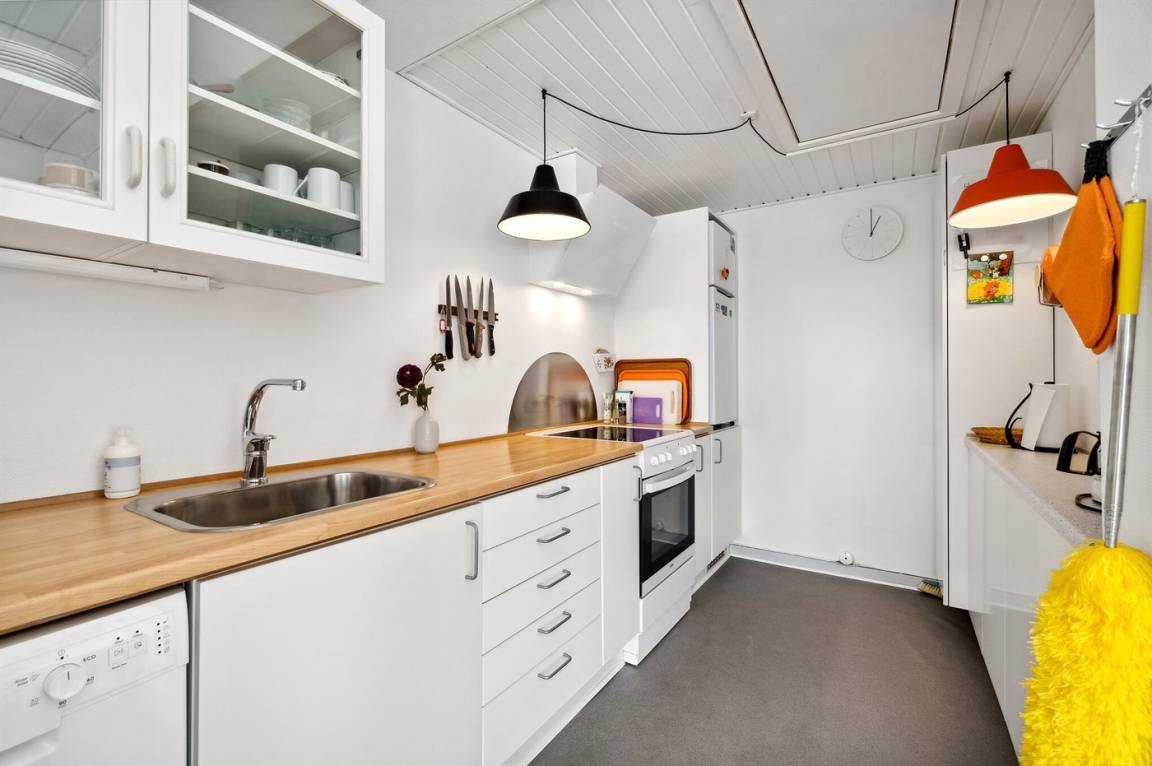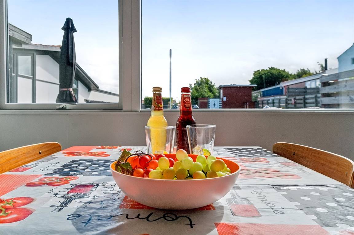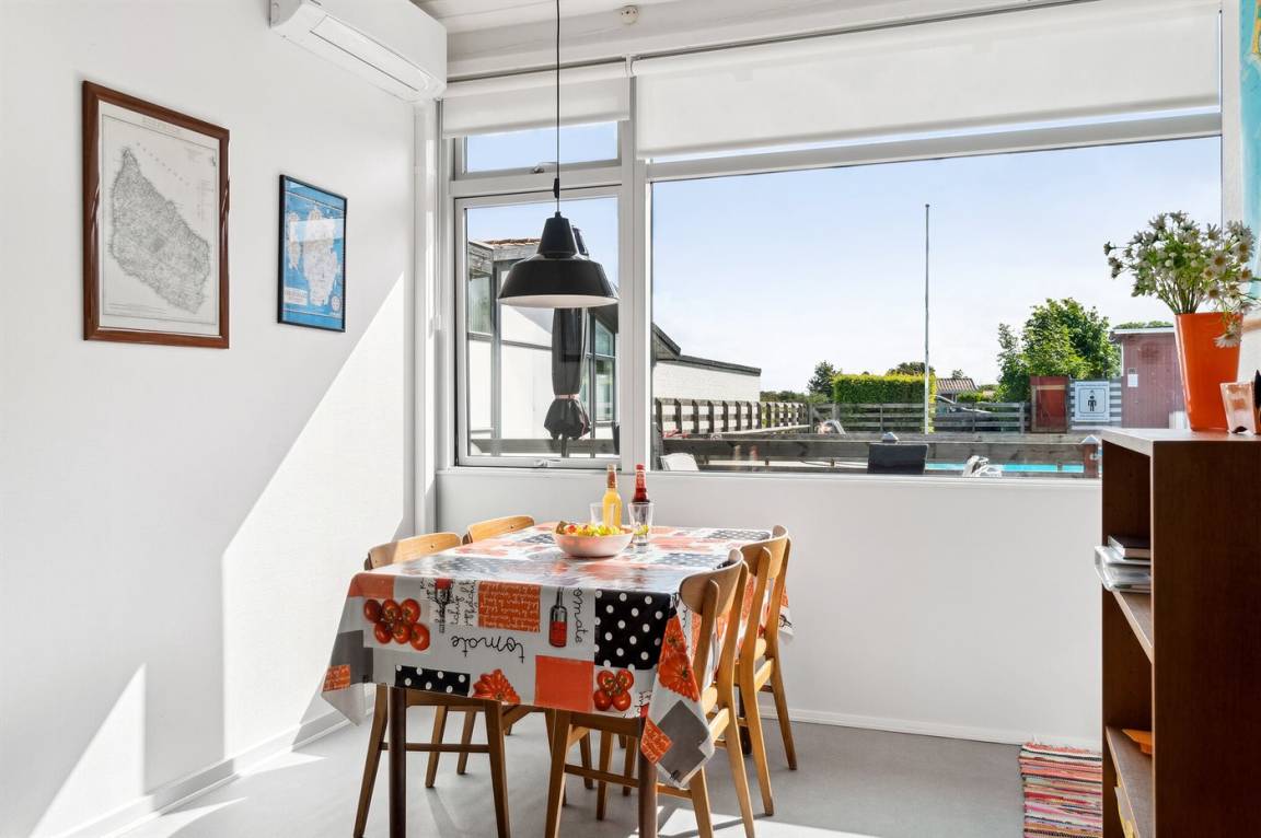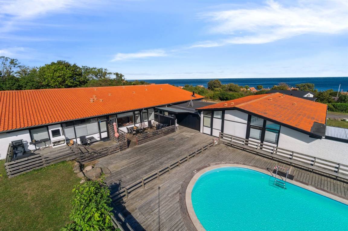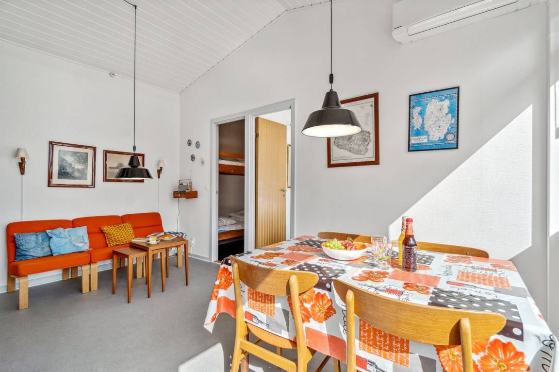 Ferienwohnung im Ferienzentrum Madseløkke, das in ruhiger Umgebung in Sandvig liegt, nicht weit vom Folkemødeplatz entfernt, der bekanntlich in der Woche 24 vor Leben sprüht, ansonsten aber ein stilles und ruhiges Naturgebiet im nördlichen Teil von Allinge ist. Das Ferienzentrum bietet gute Freizeitmöglichkeiten für Familien mit Kindern, darunter ein Gemeinschaftspool, ein Spielbereich mit Schaukeln, Sandkasten und natürlich Fußballtore zur gemeinsamen Unterhaltung. Zugang zum Swimmingpool vom 1. Juni bis 31. August.