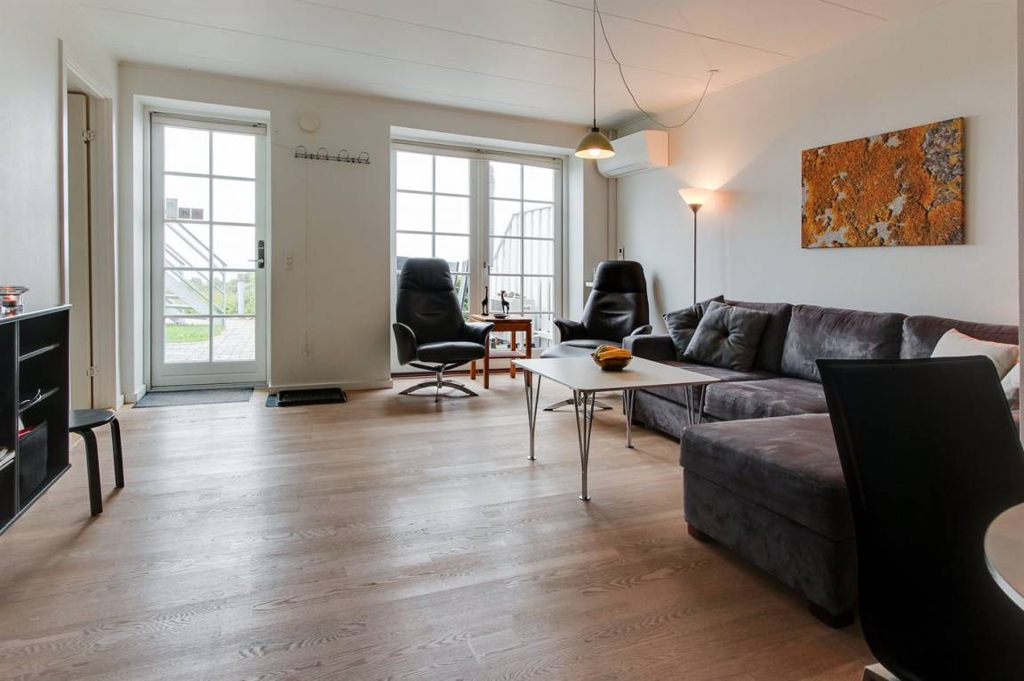 Diese geräumige, helle und nett möblierte Ferienwohnung, 2006 renoviert, liegt in der ehemaligen Pension Boesvang in Sandkås. Zur Wohnung gehört eine teilweise abgeschirmte Fliesenterrasse mit Gartenmöbeln, Gasgrill und Kohlegrill. Von der Terrasse können Sie die Aussicht auf das Meer, das sich je nach Wetterlage verändert, genießen. Rollstuhlgerechter Zugang (Fliesen) zum Haus. Innen gibt es weißgestrichene Wände und Decken sowie helle Holzböden. Die moderne Küche ist mit dem Wohnzimmer, das u. a. mit Geschirrspüler, Tiefkühlgerät, Mikrowelle, Umluftofen, Mikrowelle und Herd mit Ceran-Feld ausgestattet ist, kombiniert. Im Wohnzimmer, mit großes Fensterfront zum Meer hinaus, finden Sie Stereoanlage mit CD-Spieler und Smart-TV . Die Schlafplätze der Wohnung verteilen sich auf 2 Zimmer mit Doppelbett sowie 2 Schlafplätze auf einer Doppelschlafcouch im Wohnzimmer. Schönes Badezimmer mit Fußbodenheizung, Duschnische und Waschsäule. Die Wohnung liegt auf einem Gemeinschaftsgelände mit beheiztem Außenswimmingpool (10,0 x 9,0 x 2,0 m), der im Zeitraum 15.06.-15.09. geöffnet ist. Sandkås ist ein beliebter Ferienort - dicht an guten Aktivitätsmöglichkeiten und Sehenswürdigkeiten wie z.B. 2 x 18-Loch Golfplatz, die Burgruine Hammershus, die faszinierende bronzezeitlichen Felszeichnungen bei Madsebakke und den See "Opalsøen".