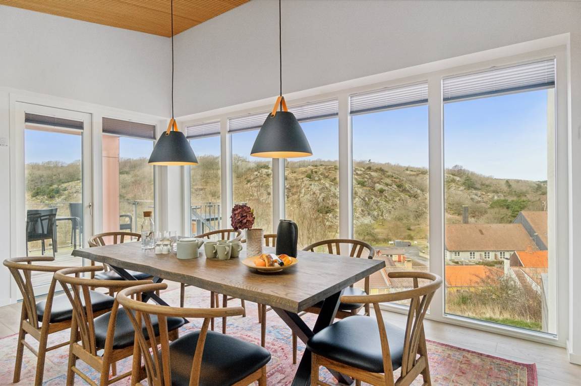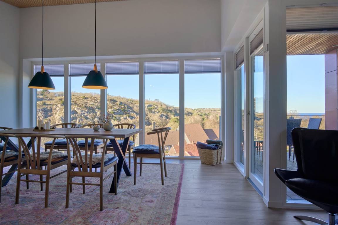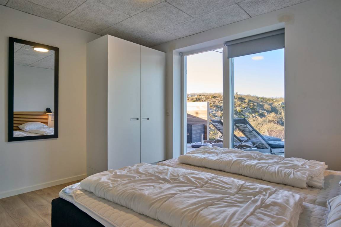 Diese schöne und völlig einzigartige Ferienunterkunft, im Jahr 2023 erbaut, liegt fantastisch mit Panoramablick auf den Hammerknuden und die Sandvigbucht. Hier erlebt man einige der schönsten Naturgebiete Bornholms direkt durch die beeindruckenden Glasfronten.