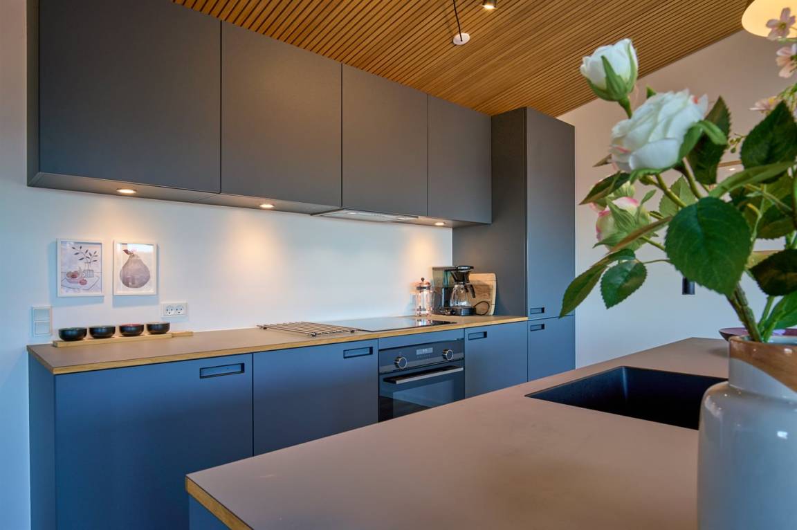 KücheDie Küche ist mit Kühlschrank ausgestattet. Außerdem gibt es 4 Induktions-Kochzonen, Umluftofen sowie Geschirrspüler.