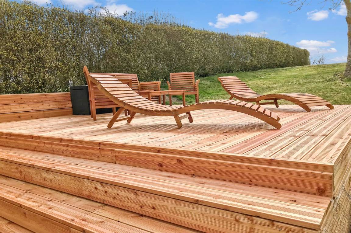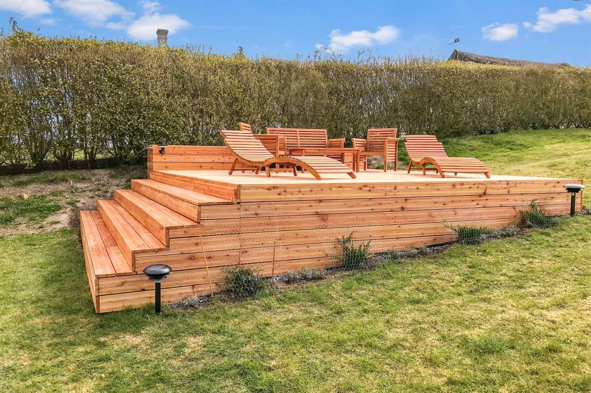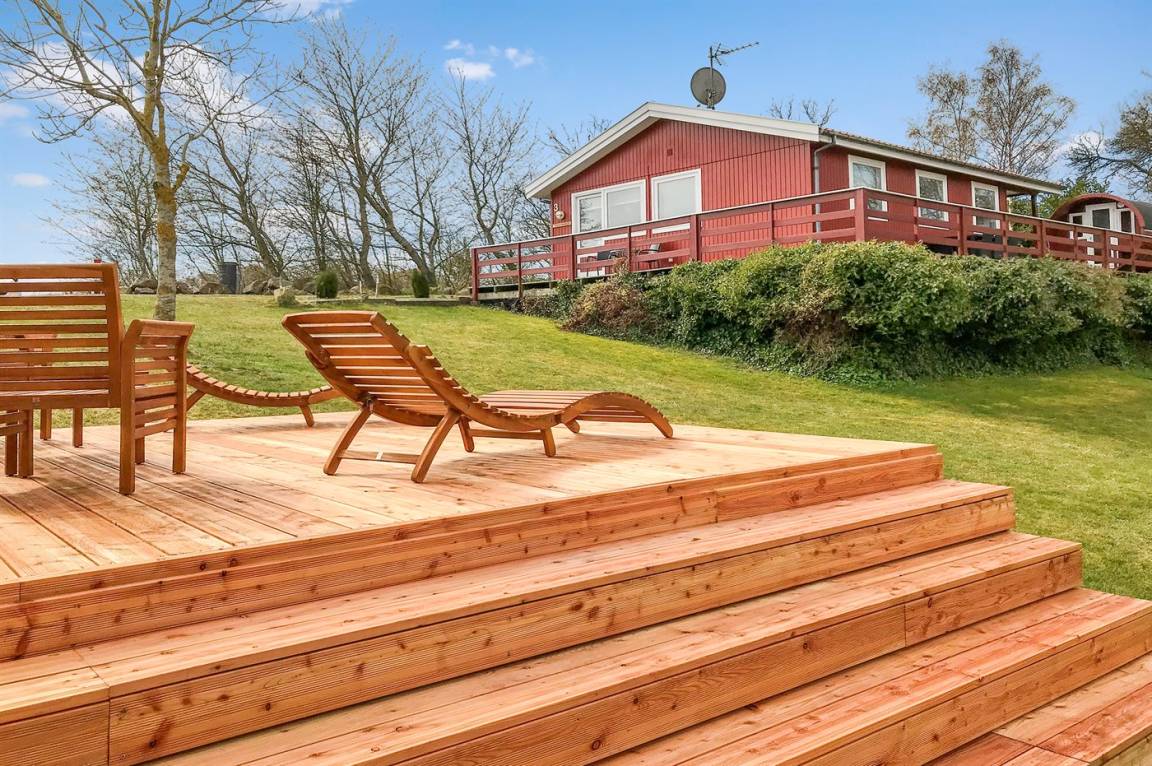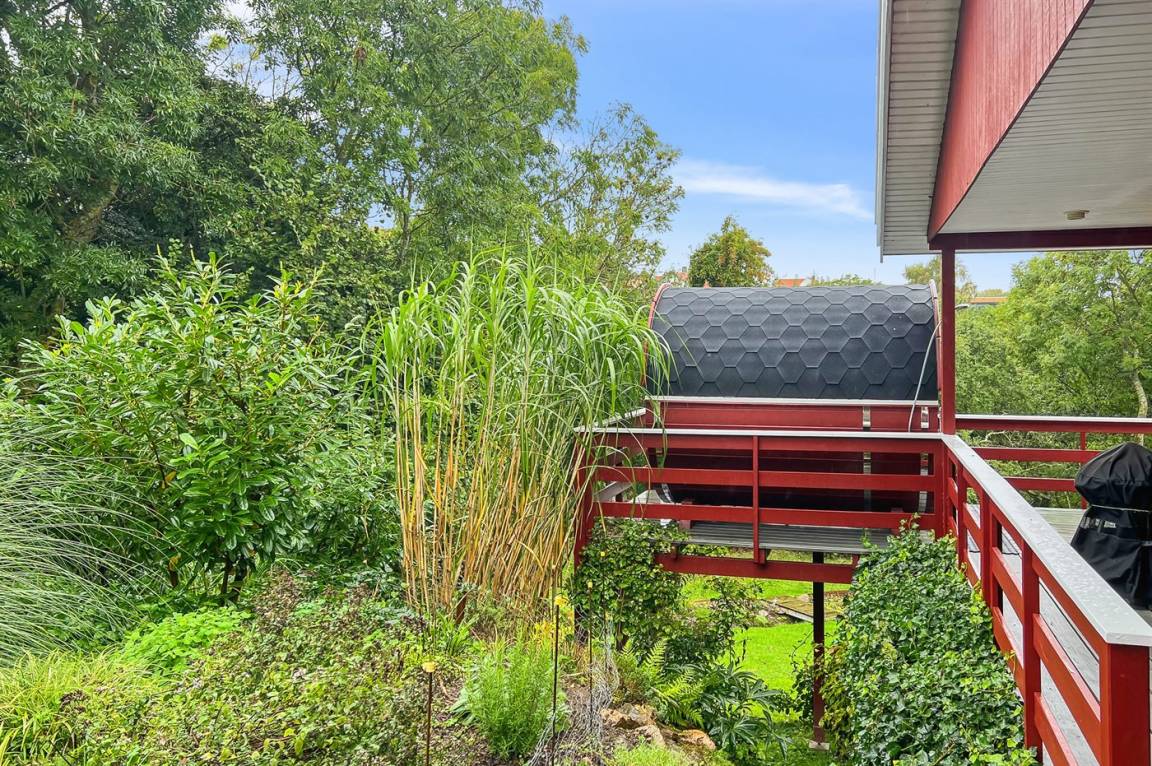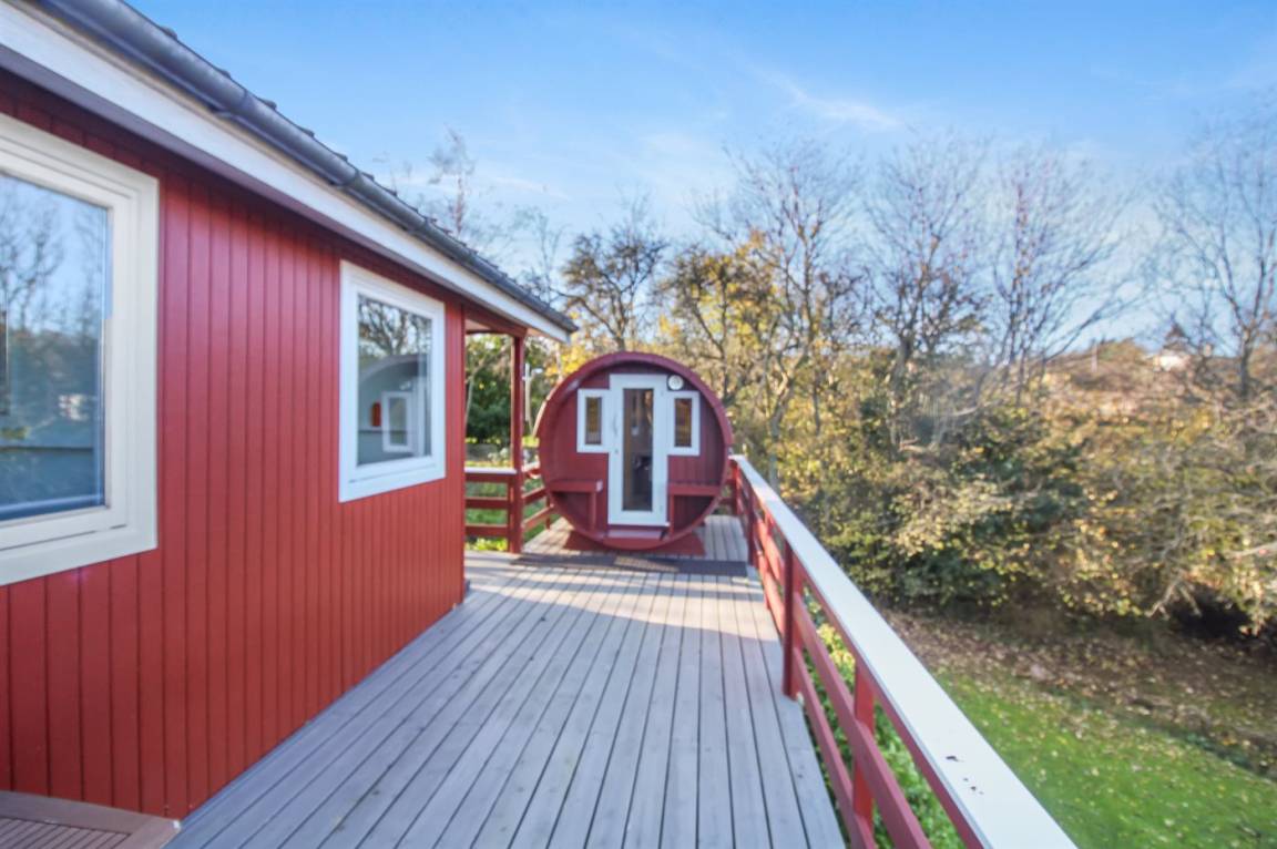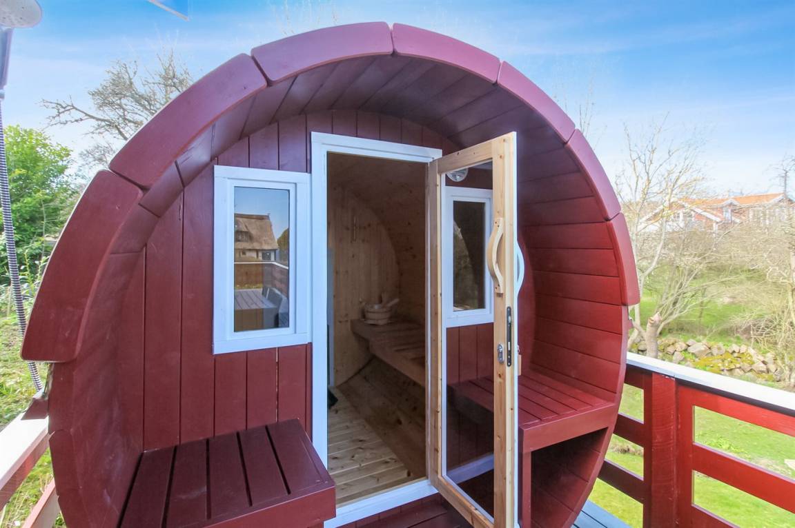 DraußenDie Ferienunterkunft liegt auf einem 1452 m² großen Naturgrundstück. Die Entfernung zum Meer beträgt 500 m. Die nächste Einkaufsmöglichkeit liegt 1000 m entfernt. In einem Abstand von 10000 m gibt es einen Golfplatz. Es steht ein 45 m² Terrassenareal zur Verfügung. Außerdem gibt es 5 m² überdachte Terrasse. Geräteraum. Außensauna. Außendusche mit kaltem Wasser. Es ist ein Ladestecker für Elektroautos installiert. Parkplatz auf dem Grundstück.